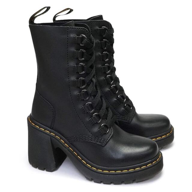 強烈に個性を主張するドクターマーチン Ardernコレクションより、チャンキーなフレアヒールが個性的なレースアップブーツ。