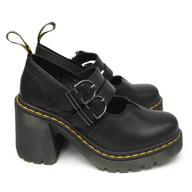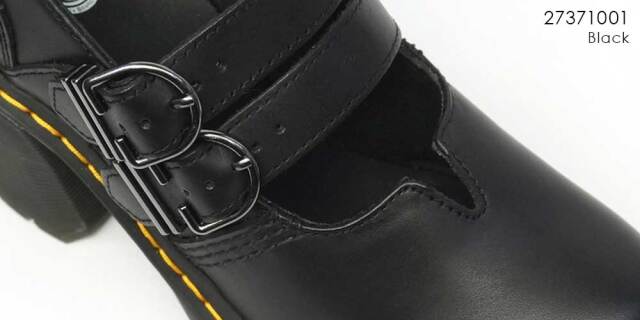 安定感のあるガッシリとしたのヒール、ヒールループ、ウェルトのイエローステッチがドクターマーチンらしいチャンキーなシルエットのメリージェーンシューズです。
