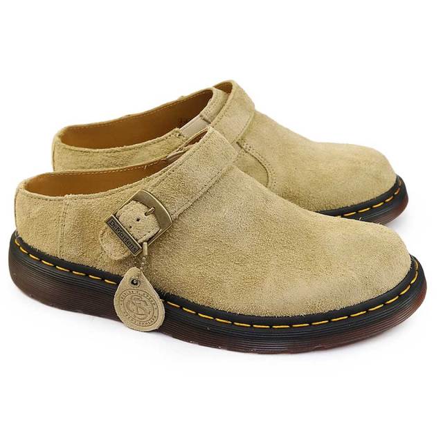このミュールサンダルは、シューズとサンダルの中間のスリッポンタイプで、カジュアルながらも存在感があります。ベルトの位置によって両方を兼用できる2Wayモデル。英国のチャールズFステッド社の上質なスエードを使用し優しいフィット感を楽しめます。バックル金具にはアンティーク調のブランドロゴが刻まれ、ウェルトにはアイコンであるイエローステッチを施し丸みのあるフォルムがコーディネートのアクセントになることで、デイリーユースや旅行など幅広いシーンで活躍します。幅、サイズ感・・・標準的な大きさです。