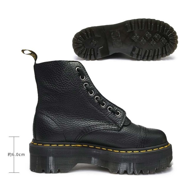 元々は森林戦のためにデザインされたコンバットブーツ。ジャングルブーツとも呼ばれており、ヒップホップアーティストがアーバンジャングルのスタイルを取り入れることでメインストリームでも人気が高まりました。重量感のあるソールと、センタージップが特徴。ヒールループと黄色のウェルトステッチを施して、シンクレアは現代的なスタイルでありながらドクターマーチンの反抗的なスピリットを維持しています。幅、サイズ感・・幅表示等はありませんが、標準程度です。