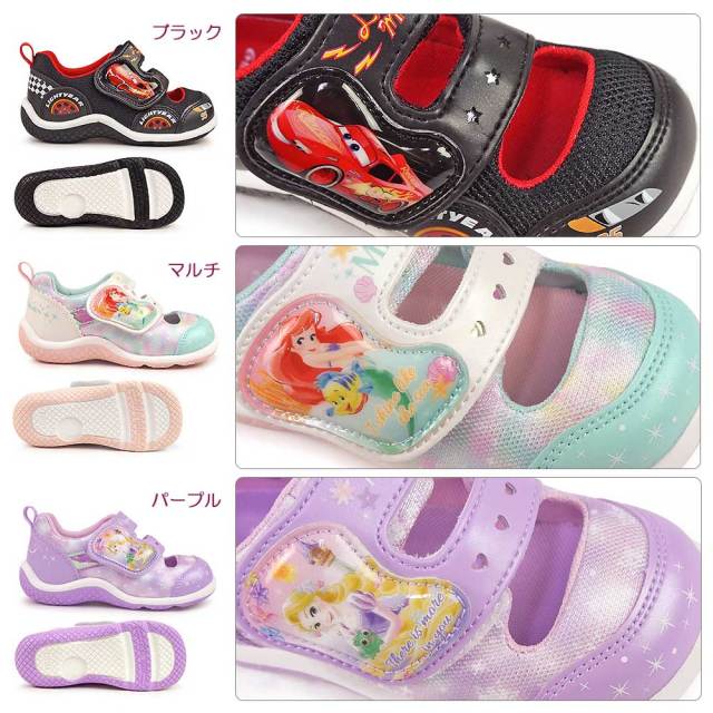 ディズニープリンセス 子供スニーカー 公園 マジック式 かわいい 夏 プール ディズニー映画 アリエル リトルマーメイド 塔の上のラプンツェル 女の子 男の子 通園 運動靴