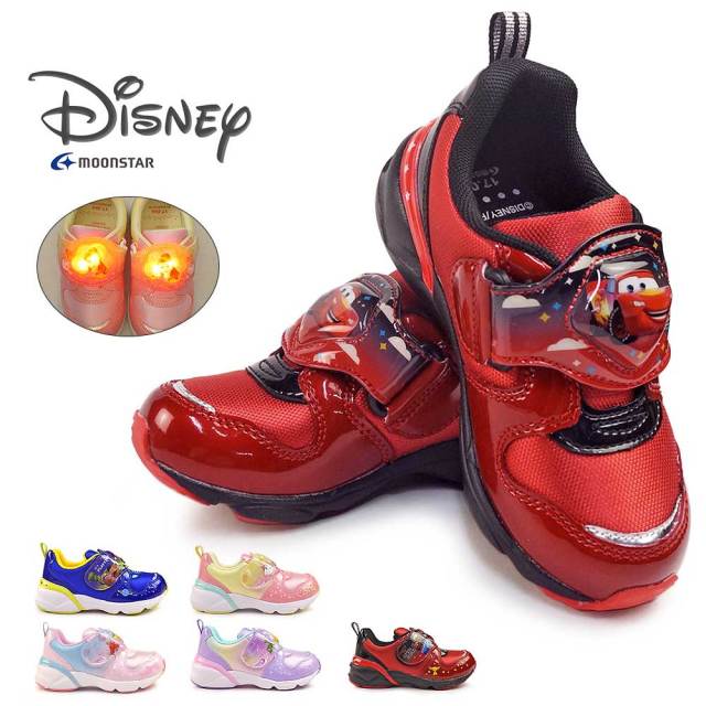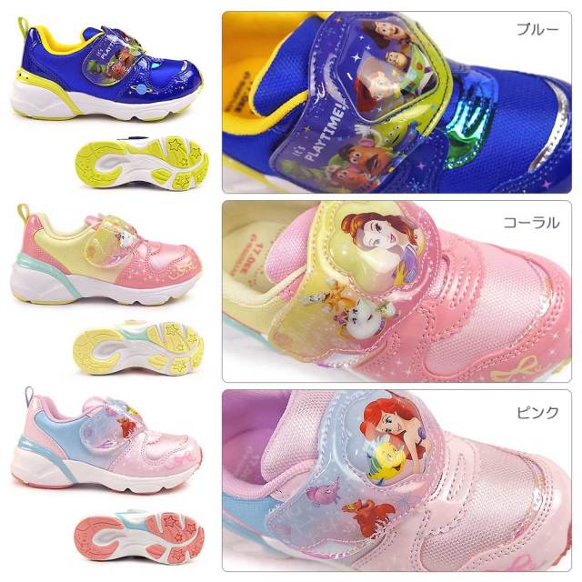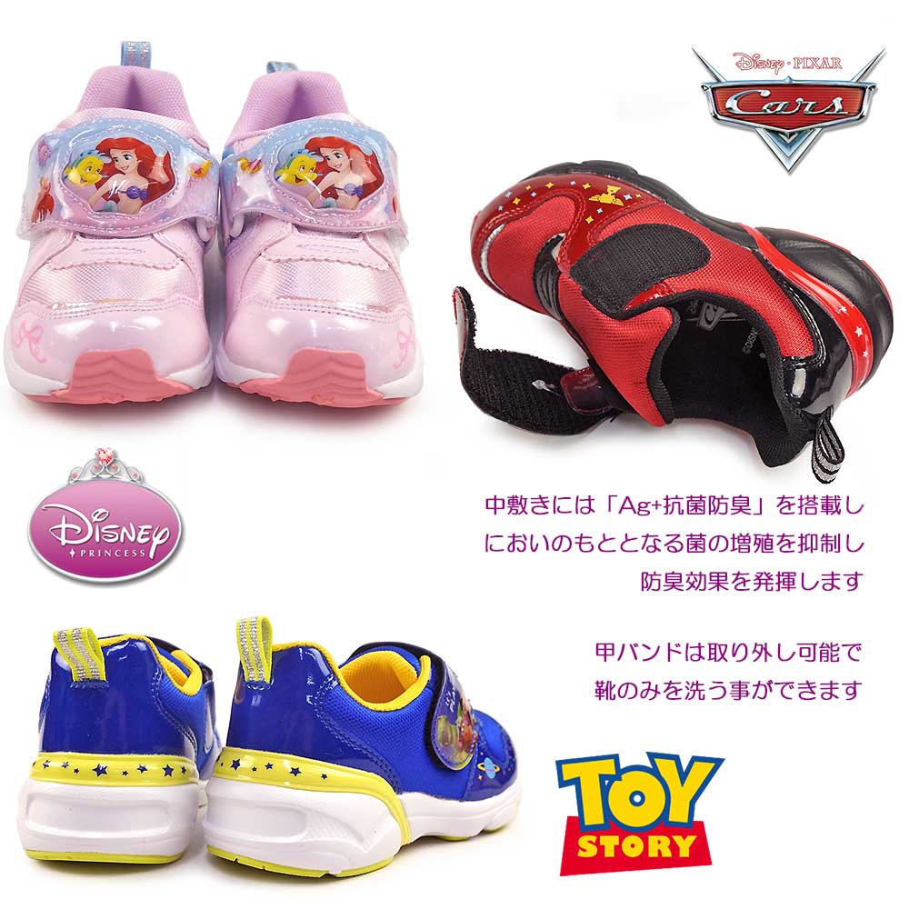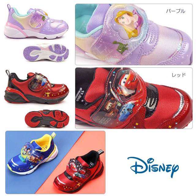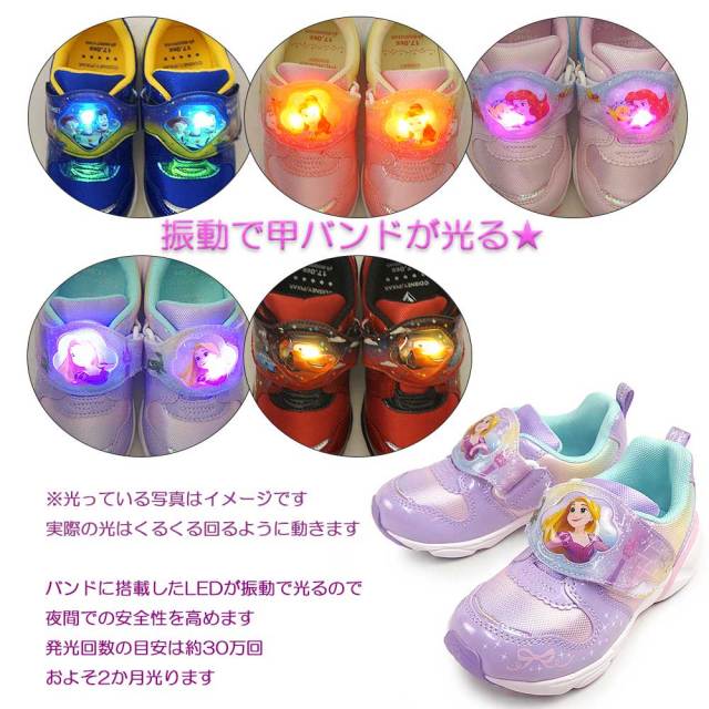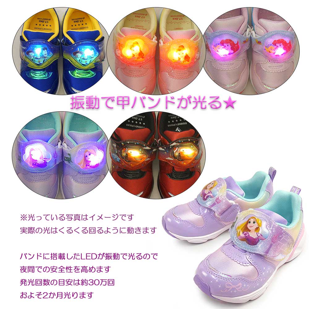 ディズニープリンセス トイストーリー カーズ LEDシューズ かわいい かっこいい アリエル ラプンツェル ベル バズ マックィーン ブルー ピンク パープル 公園 夜道