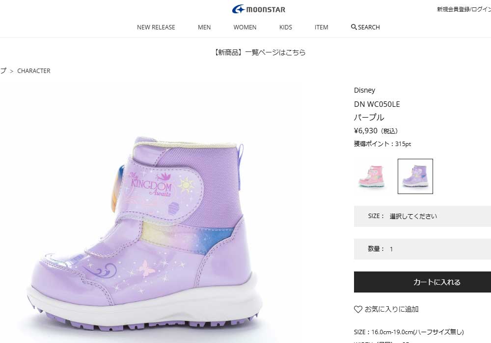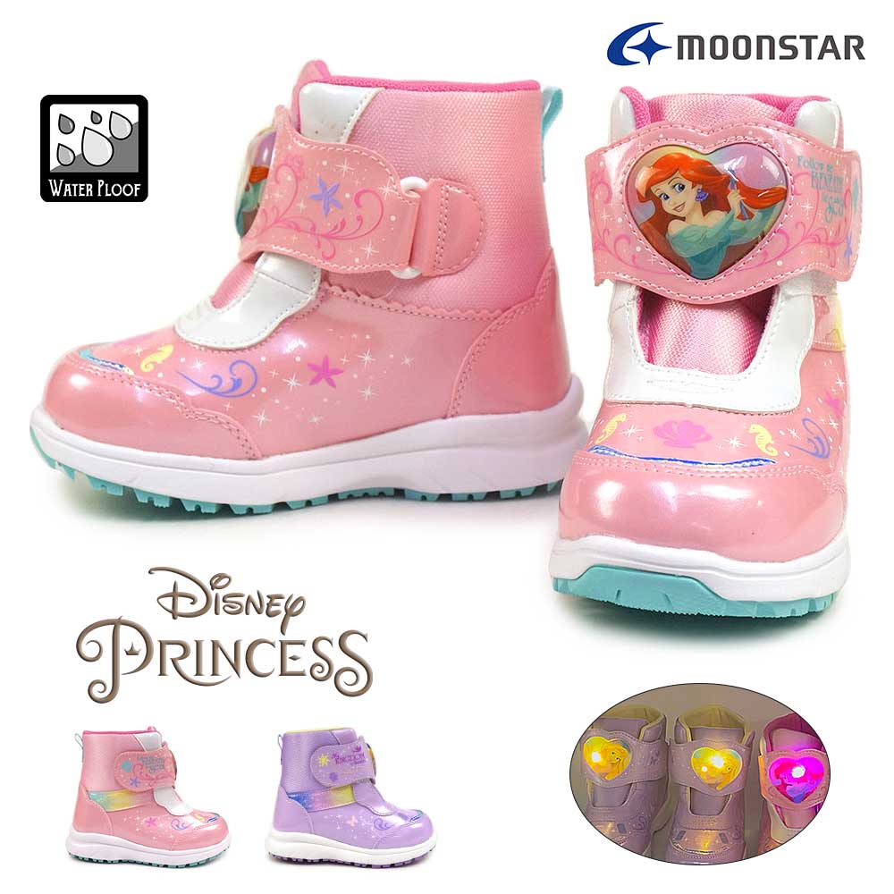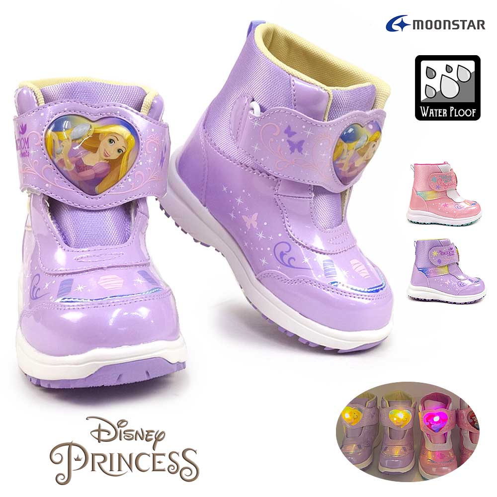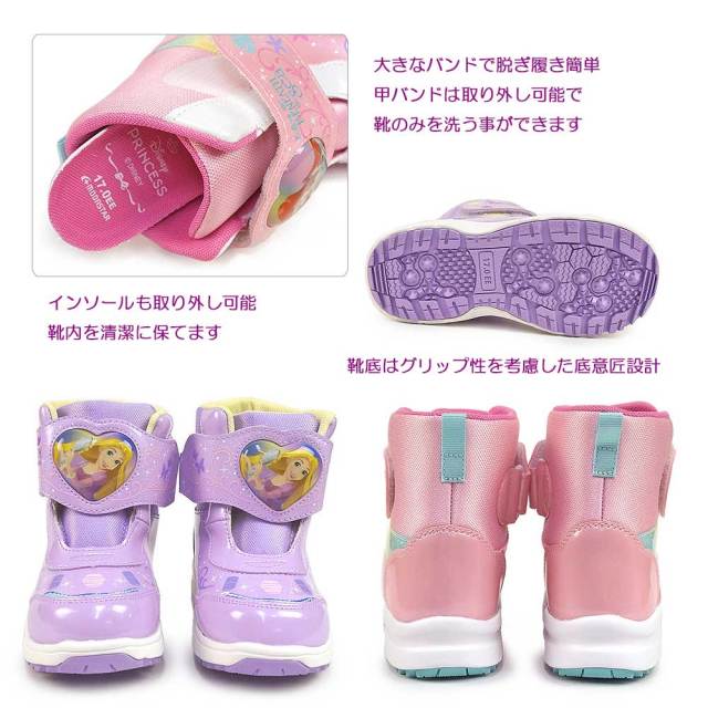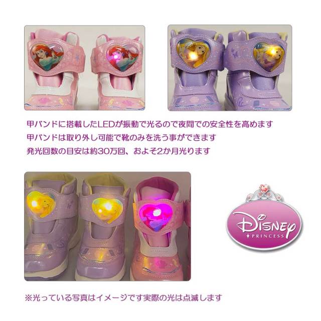ディズニープリンセスのLEDキッズ用ウインターブーツです。キラキラ素材を使用した華やかなデザイン。