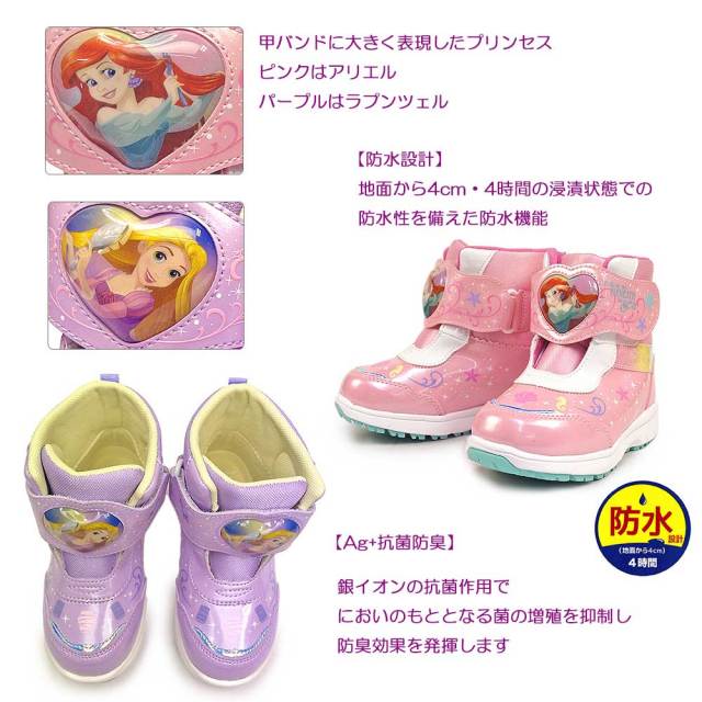プリンセス 雪国 スノーブーツ アリエル ラプンツェル ウインター 雪 雨 冬用 ギフト ガールズブーツ ディズニーキッズブーツ