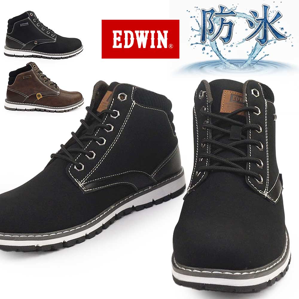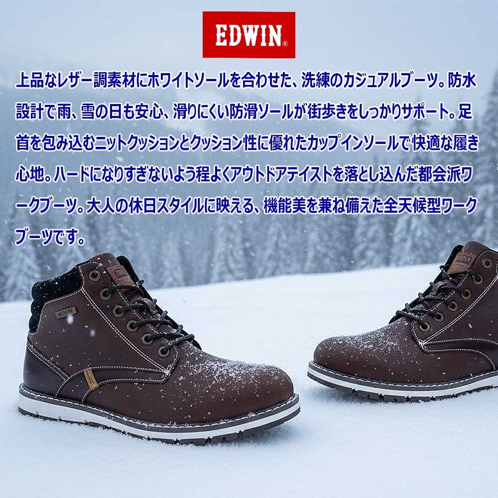 エドウィン メンズ 防水 ワークブーツ 雪国 スノーブーツ ブラック ブラウン