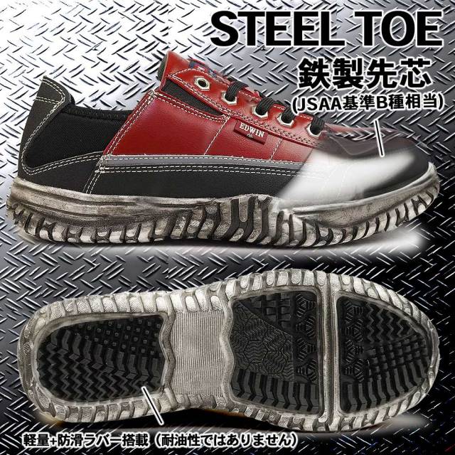 エドウィン メンズ ミュール サンダル カカトをつぶせる 安全スニーカー セイフティーシューズ 軽作業 相互作業 作業靴 運送業 カジュアルシューズ 合皮 ブラック ブラウン ストリートスニーカー ワークシューズ