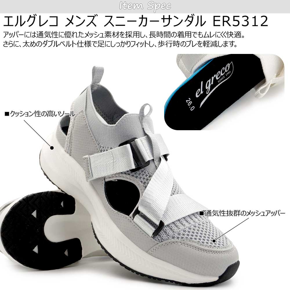 エルグレコ ER5312は、スニーカーの安定感とサンダルの通気性を融合した一足です。