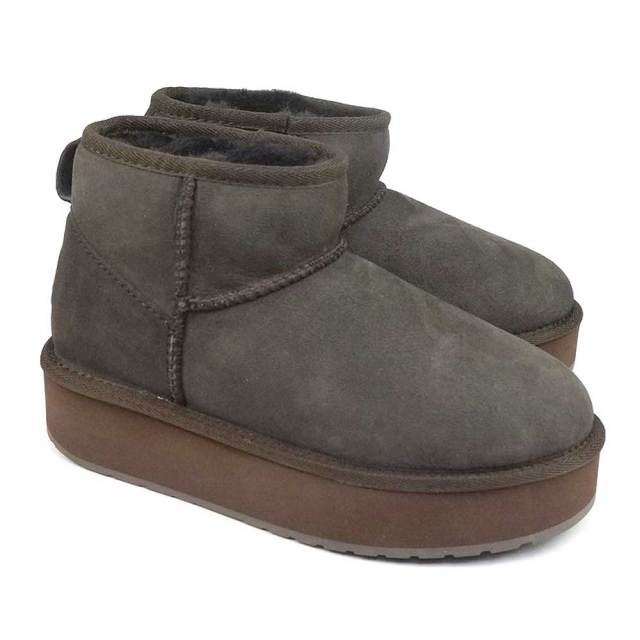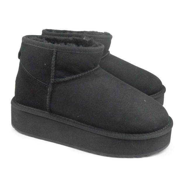 スティンガーミクロフラットフォーム 厚底ムートン 本物 羊革 本革 美脚 シューズ 黒 ブラック ブラウン チェスナット 茶色 チョコレート ダークブラウン かわいい おしゃれ あたたかい