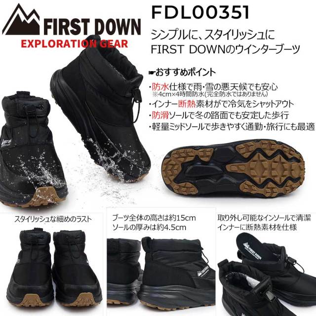 ファーストダウン エクスプロレーションギア ショートブーツ 冬用ブーツ 防寒ブーツ タウンユース ミニマルデザイン シンプル 雪国
