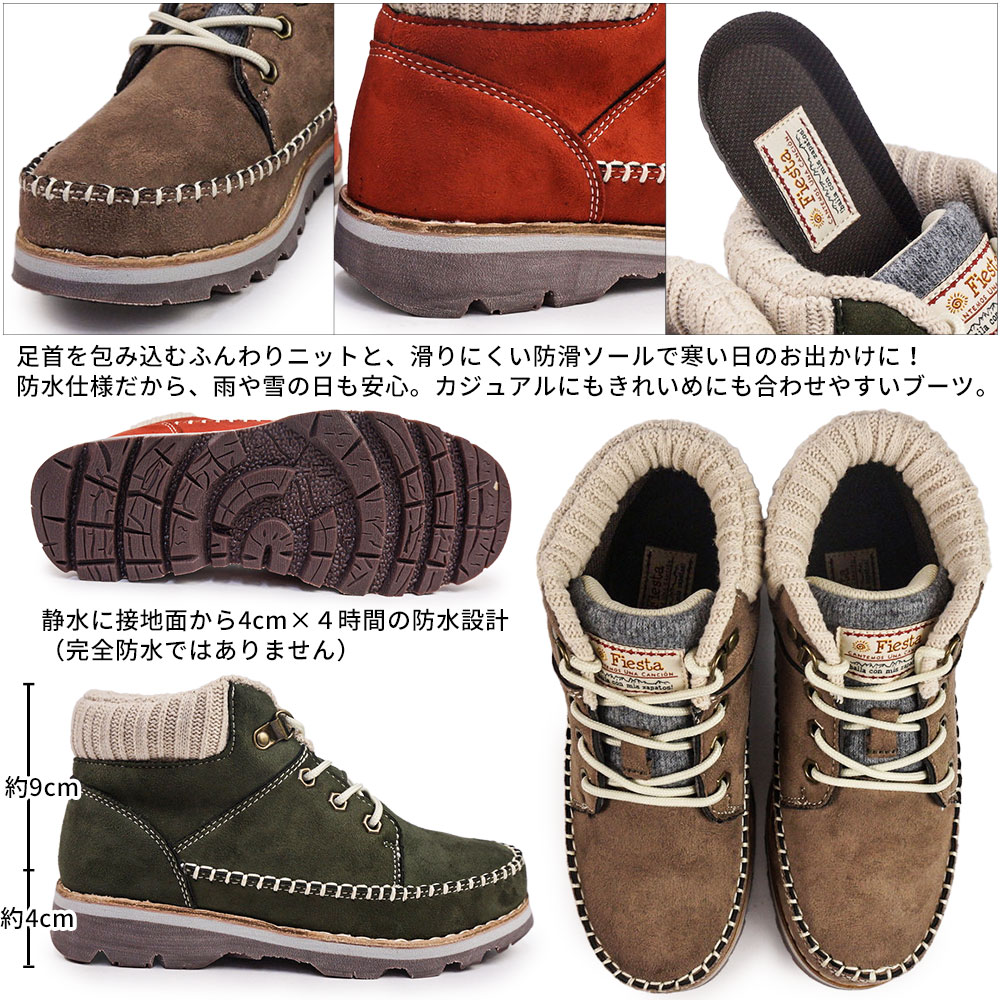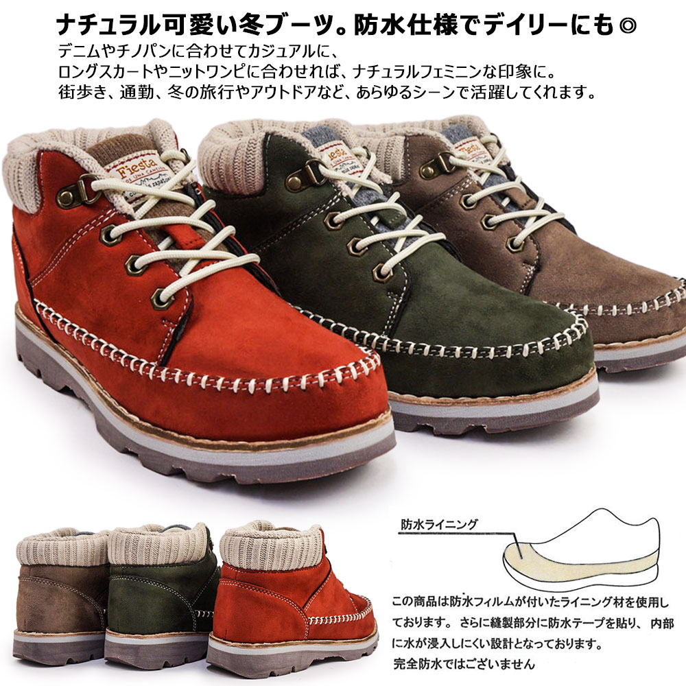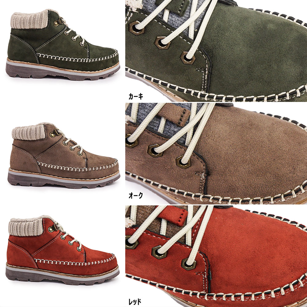 レディース 防水 カジュアルブーツ モカシン風デザイン 撥水 冬靴 秋冬ファッション 毎日履ける ブラック オーク レッド