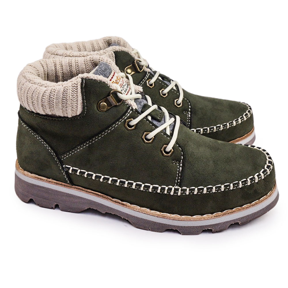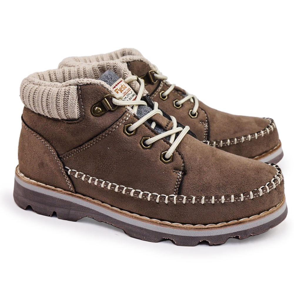 ナチュラルで暖かみのあるカラーと、モカシン風のステッチがアクセントになったショートブーツ