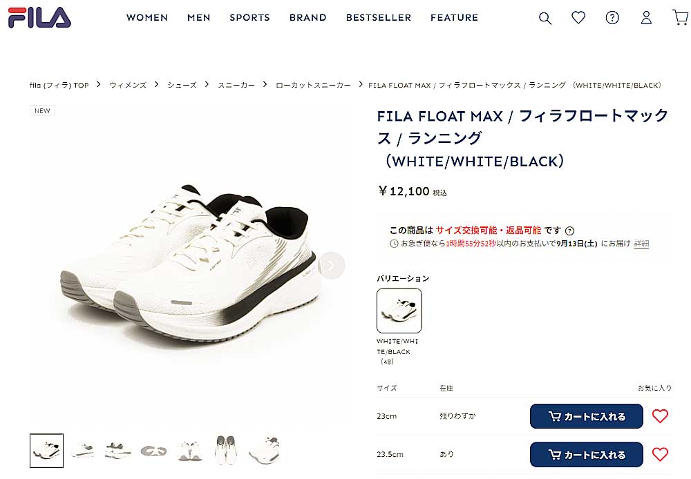 FILAランニングパフォーマンスFLOATのラインナップの中でも、最もクッション性に優れたランニングシューズです。広いボールフィットと設置面積により、軽いトレーニングだけでなく、日常の使用にも快適です。