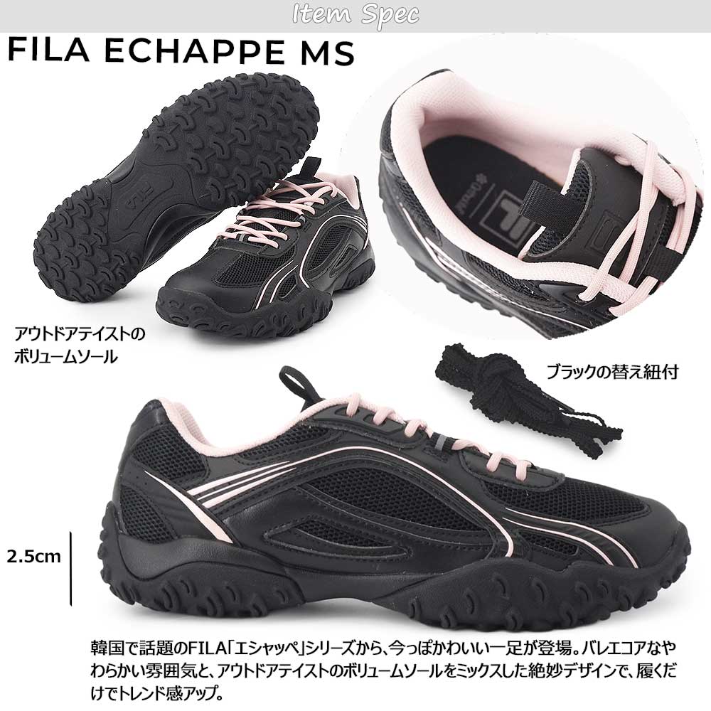 韓国で話題のFILA「エシャッペ」シリーズから、今っぽかわいい一足が登場。バレエコアなやわらかい雰囲気と、アウトドアテイストのボリュームソールをミックスした絶妙デザインで、履くだけでトレンド感アップ。細部までこだわったアッパーや特徴的なデザインが足元にしっかり存在感をプラスしつつ、軽やかな履き心地とクッション性で長時間でも快適です。ストリートにもガーリーにも合わせやすく、毎日のコーデをもっと可愛くアップデートしてくれる主役スニーカーです。幅、サイズ感・・・幅表示なし(ページ下部弊社スタッフサイズ感参照)