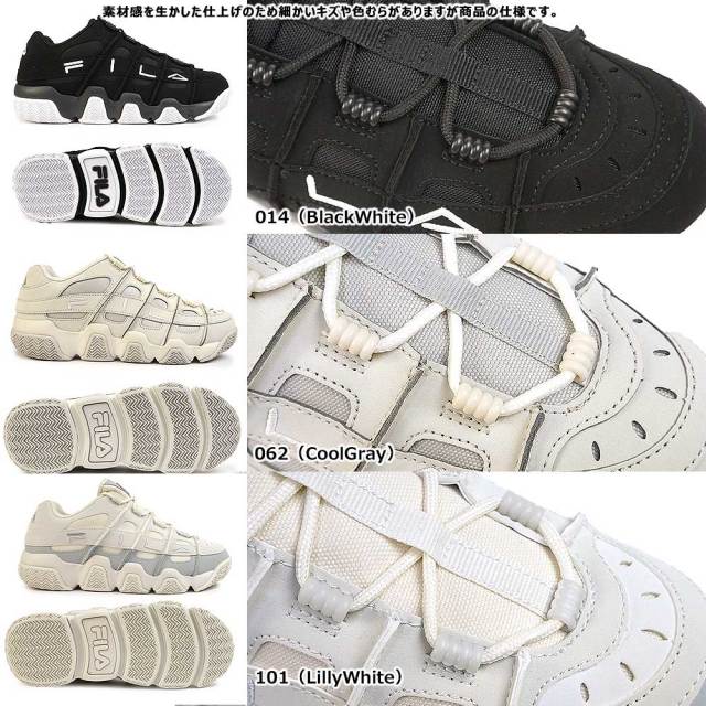 ツブランド「FILA」。バスケットボールシューズからのインスピレーションを受けたレトロなシルエットのストリートスニーカー。ボリューム感あるソールやシュータンなど、存在感のあるモデルに仕上がっています。厚みのあるチャンキーソールやフィット感に優れたカップインソールが見た目とは裏腹に快適な履き心地をお約束。その機能性とデザインからストリートバスケットプレイヤーからも熱い支持を得たモデルです。幅、サイズ感・・・スポーツメーカーのスニーカーなどと同じく小さめのつくりです。