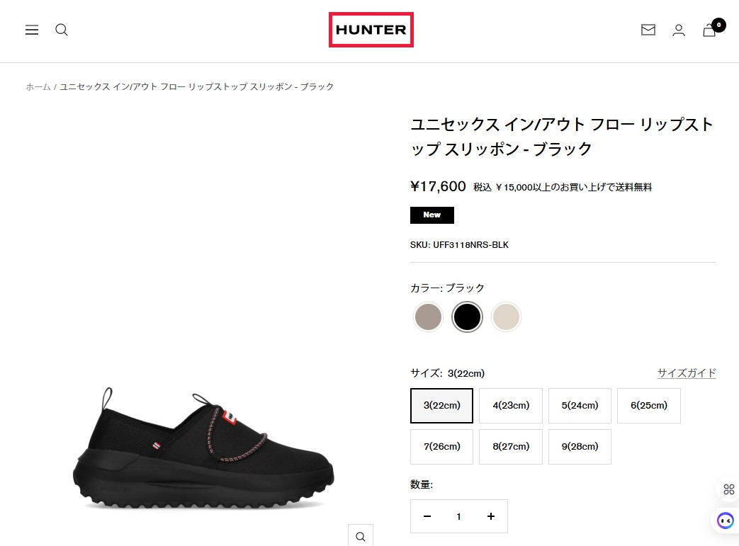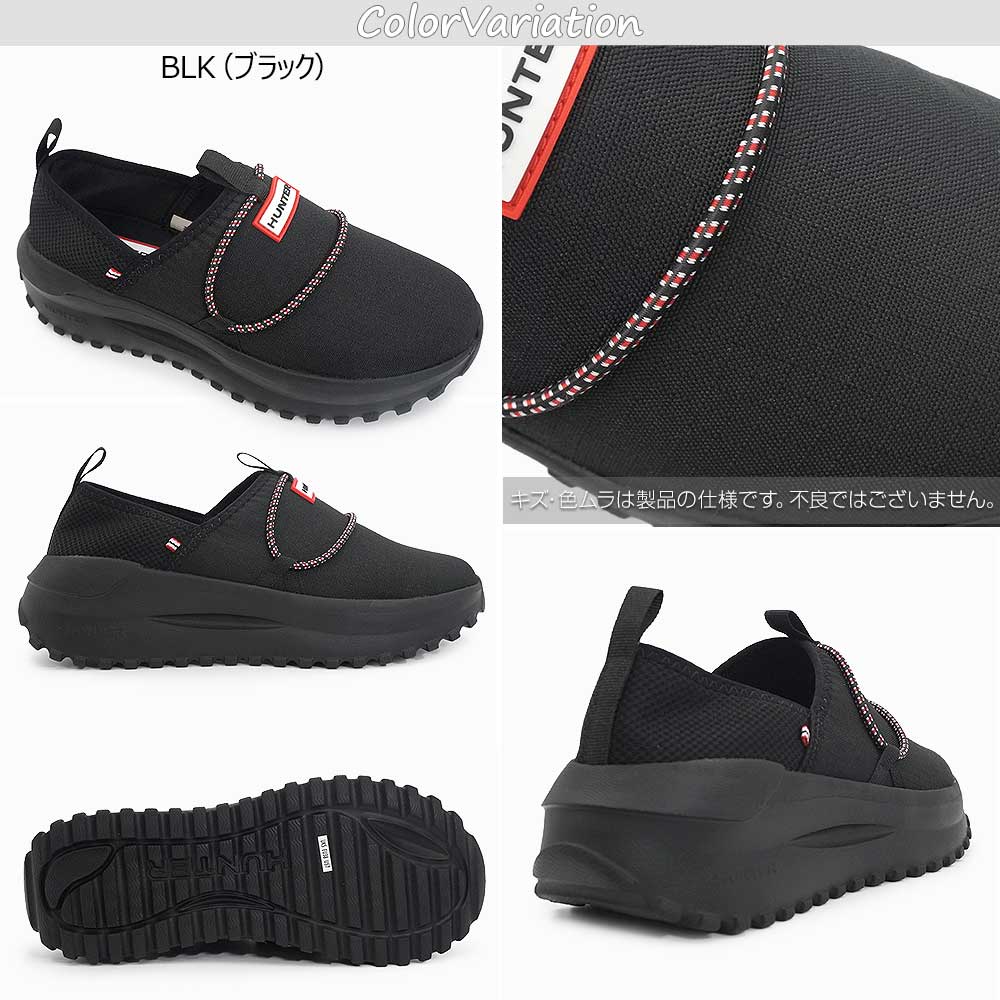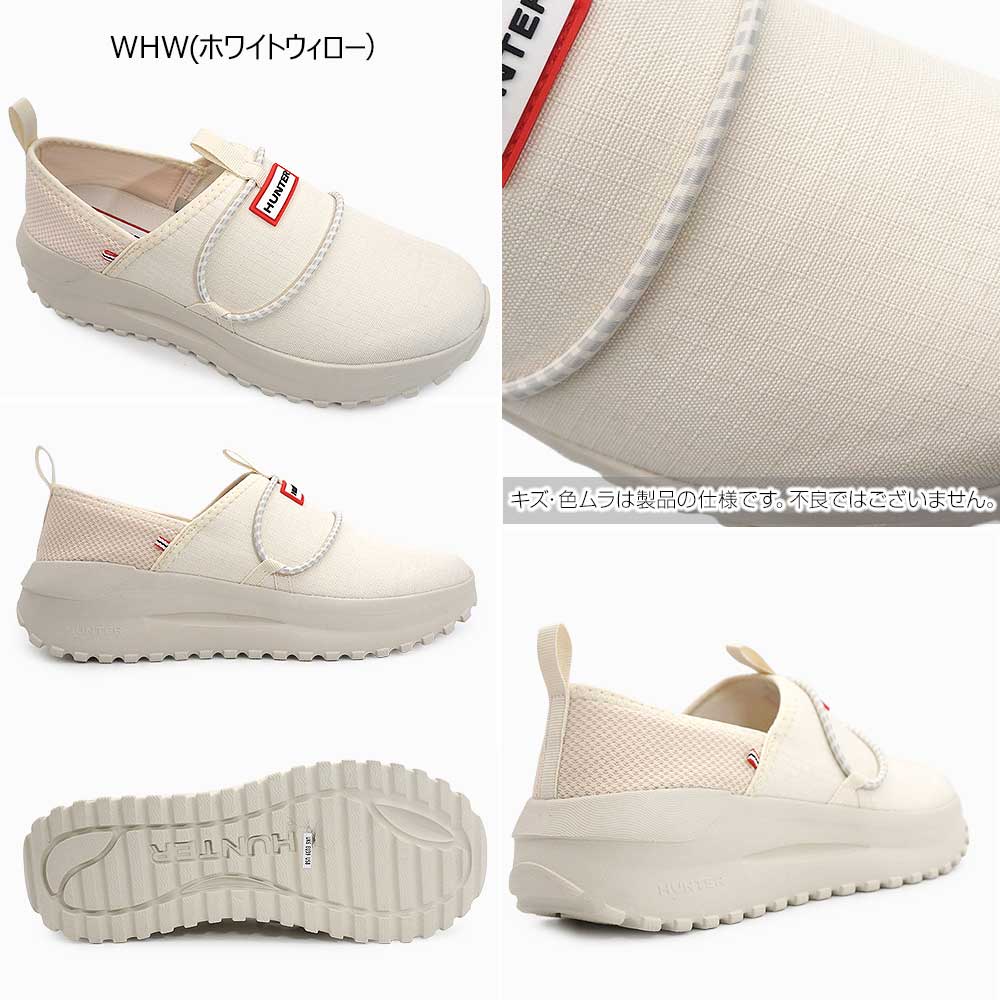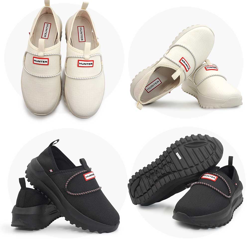 通気性に優れたリップストップ素材と軽量ソールを組み合わせた、HUNTERのスリッポンシューズ。暑い季節でも蒸れにくく、快適な履き心地をキープします。軽量で長時間歩いても疲れにくく、日常使いから旅行まで幅広く活躍。かかと部分は踏んでミュールとしても履ける2WAY仕様で、気分やシーンに合わせたアレンジも可能です。シンプルなデザインにロゴがアクセントとなり、カジュアルながらも洗練された足元を演出します。幅、サイズ感・・やや大きめ(スタッフサイズ感参照)