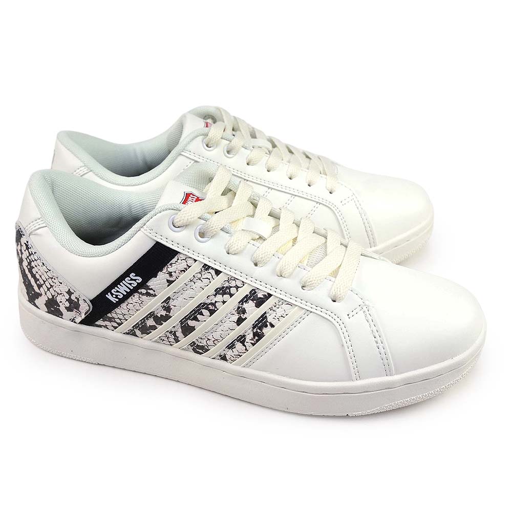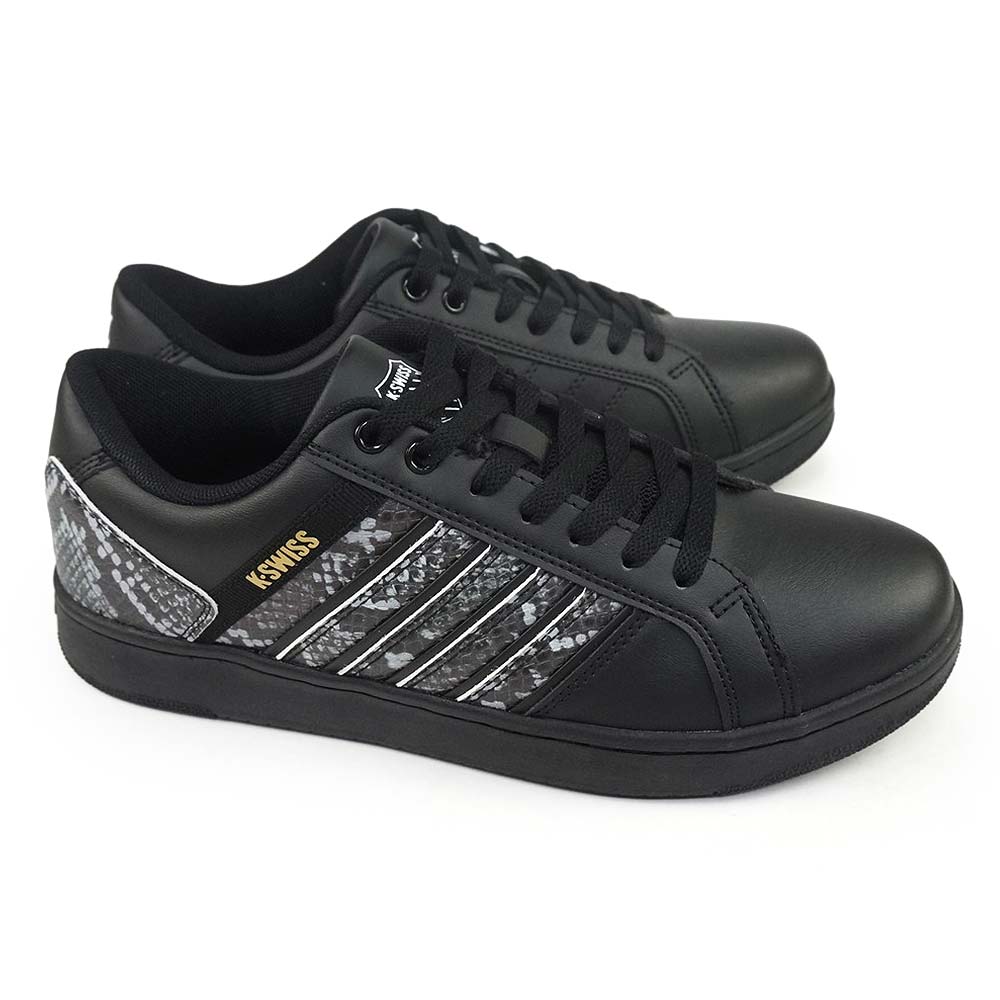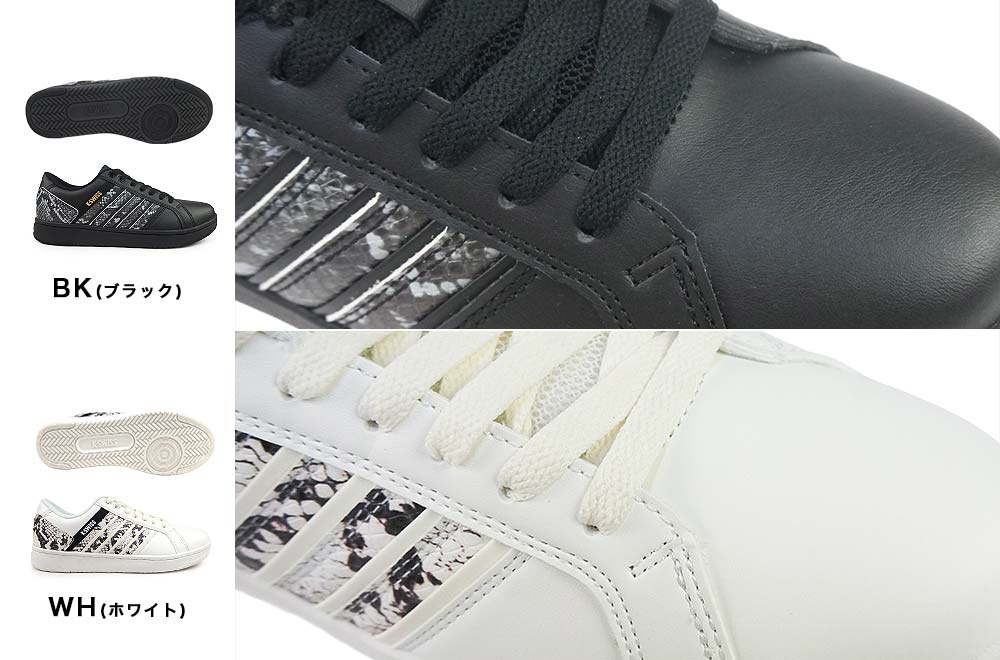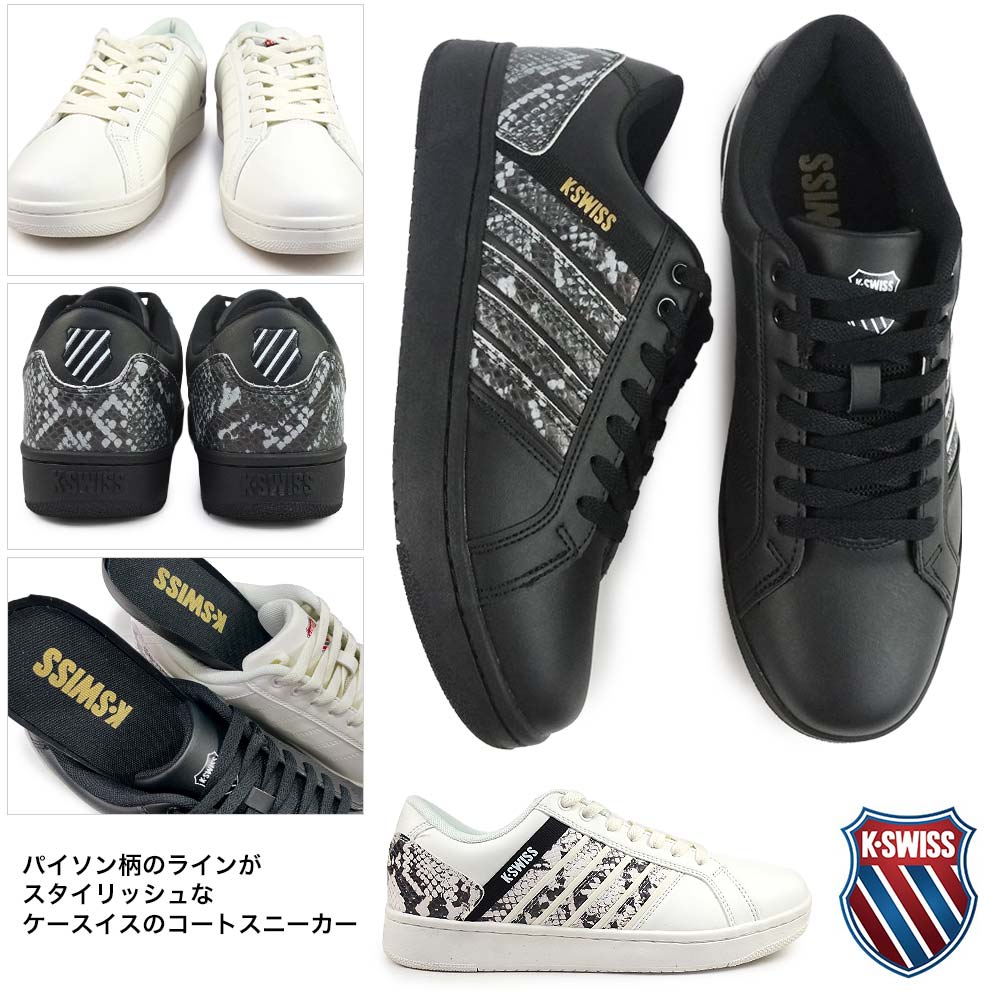 ケースイスの象徴的な5ストライプにパイソン柄のコンビがスタイリッシュな、コートスタイルスニーカー。