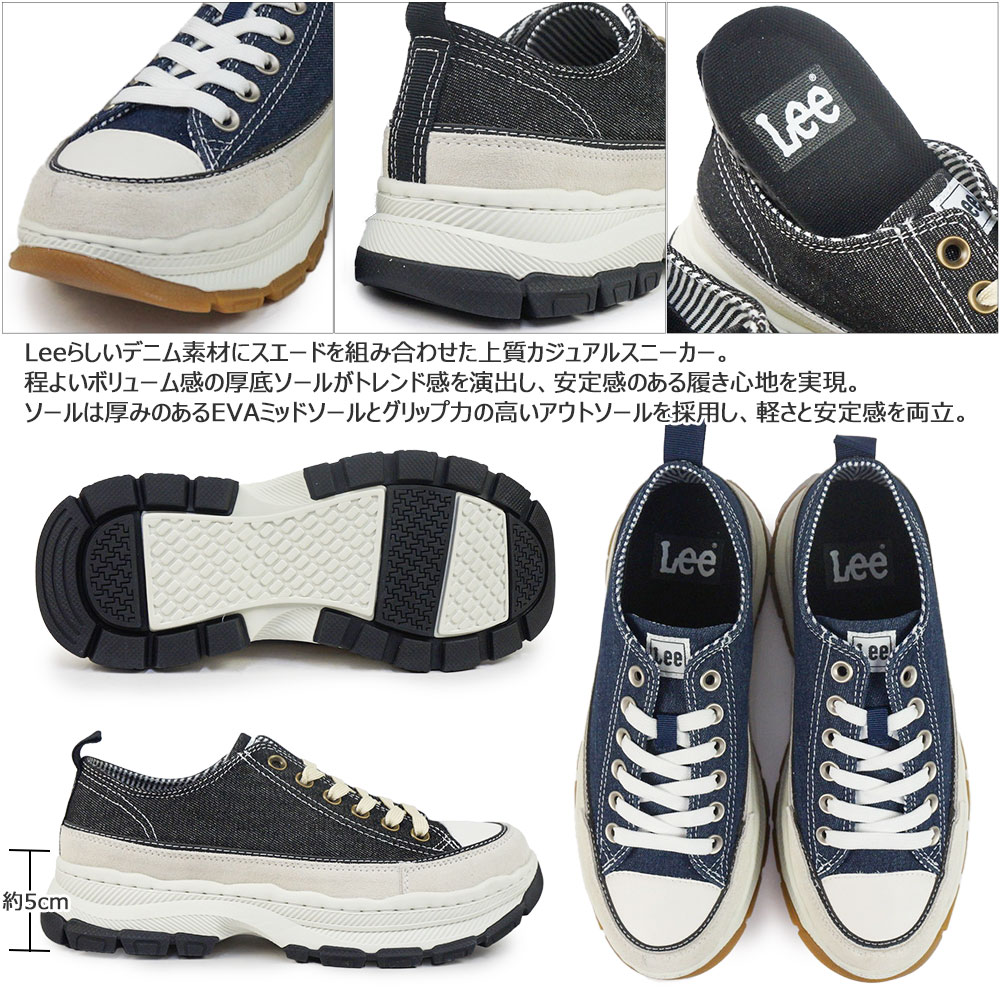 アッパーにはLeeらしいデニム素材を使用し、スエード調の切り替えで高級感をプラス。