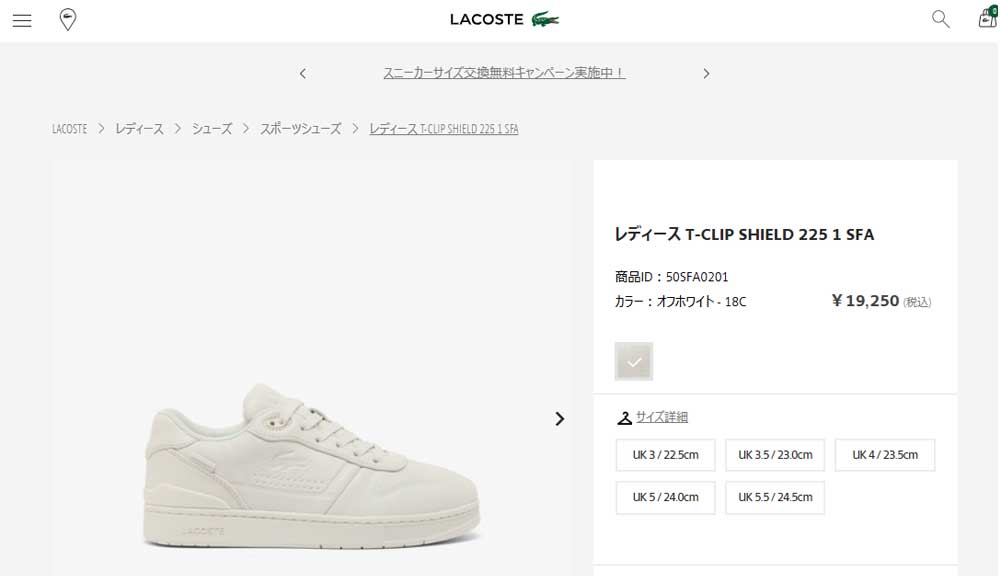 ページのサイズ表について・・・弊社ではラコステ日本代理店が指定するサイズにて表記(センチ換算)を記載しております。靴本体に表記(プリント)されているサイズ表記とは異なる場合がございます。ご了承ください。
