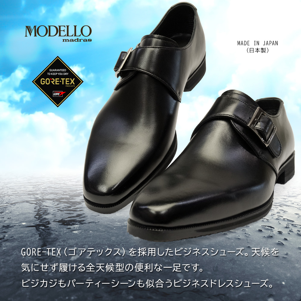 GORE-TEX(ゴアテックス)を搭載したモンクストラップ・ビジネスシューズ。足のフォルムを意識して細身の幅設定でビジネスにもカジュアルにも履きこなせるモンクストラップデザインです。ビジカジやパーティーシーンでも活躍します。