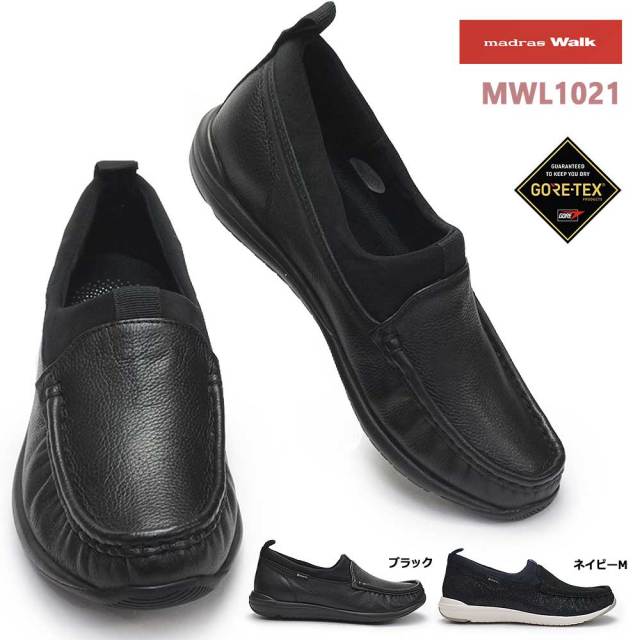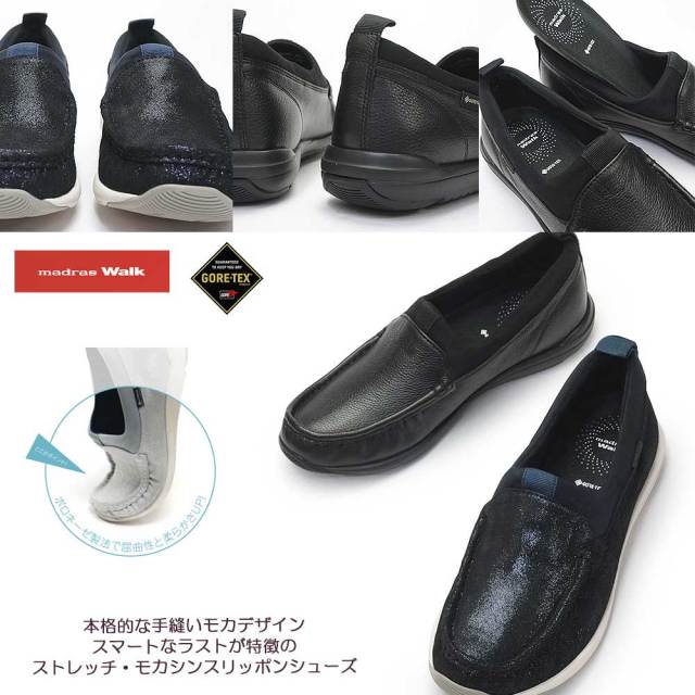 マドラスウォーク 防水 レディース スリッポン MWL1021 ゴアテックス モカシン 雨 婦人 2E EE 春 夏 手縫い モカ ストレッチ 雨 濡れない 梅雨 本革 牛革 BLA NAVM ブラック ネイビーM ギフト 誕生日 プレゼント 母の日 敬老の日