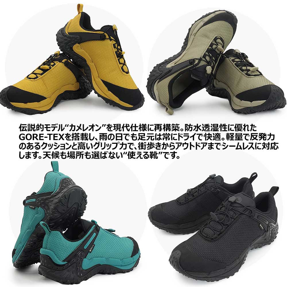 伝説的モデル「カメレオン」を現代仕様に再構築。防水透湿性に優れたGORE-TEXを搭載し、雨の日でも足元は常にドライで快適。軽量で反発力のあるクッションと高いグリップ力で、街歩きからアウトドアまでシームレスに対応します。無骨さと洗練を兼ね備えたデザインは、普段のコーデにも自然に溶け込み、どんなシーンでも頼れる一足。アウトドア専用でも、ファッション専用でもない、その中間ではなく、両者を横断する存在として天候も場所も選ばない使える全天候型ハイキングシューズです。幅、サイズ感・・・標準からややゆったりめの小さめのサイズ感です。(サイズアドバイス参照))