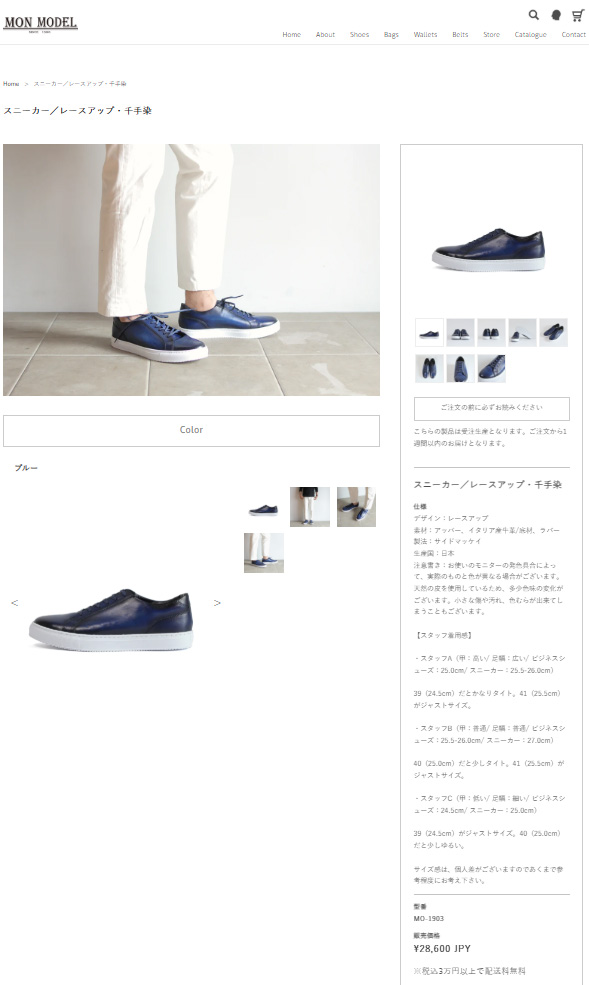 フランス語でMonModel(モン・モデル)は「私のモデル」。「日本人の感性で色の表現をした靴を作りたい」という思いから誕生した、革を手染めで色づけする”千手染(せんじゅぞめ)”。