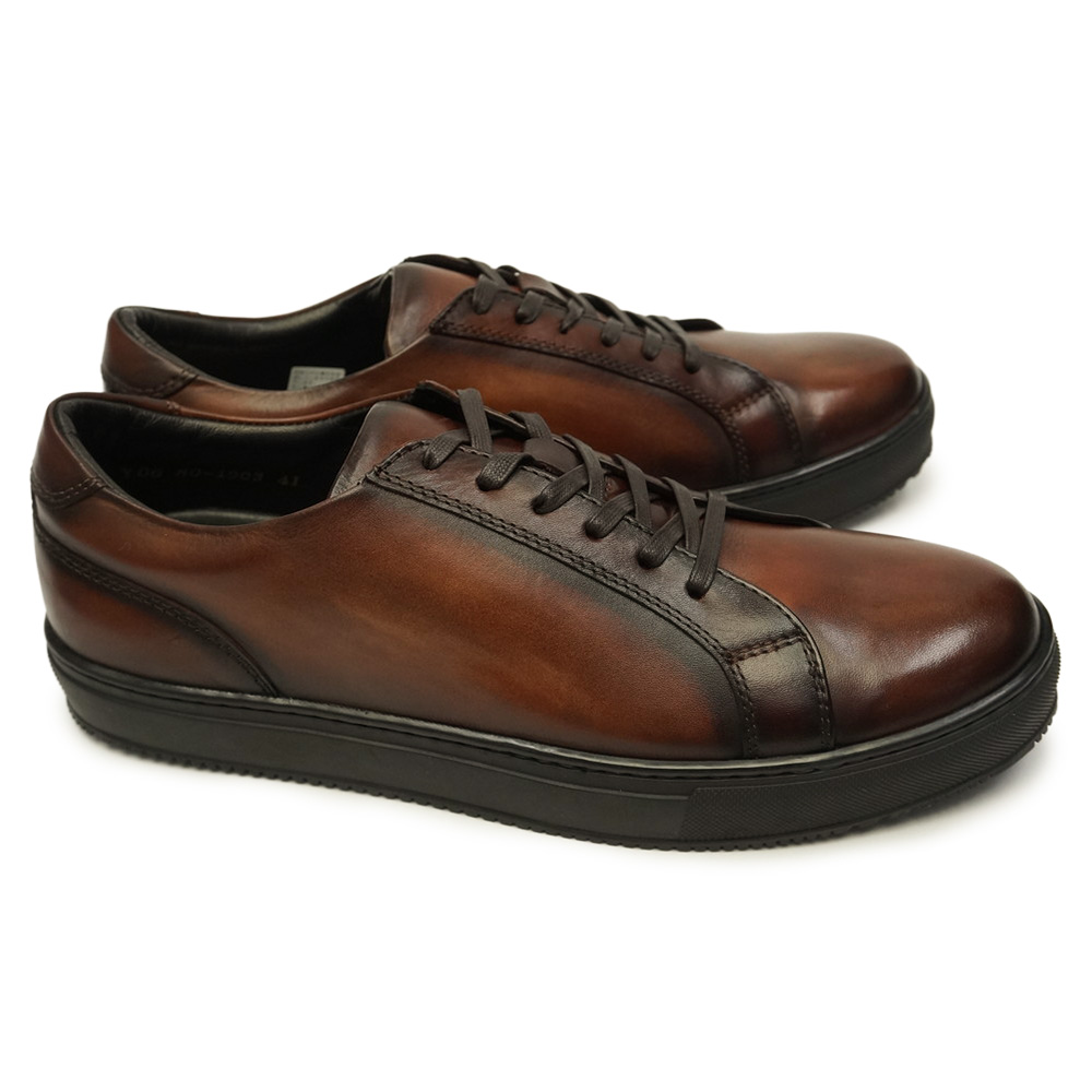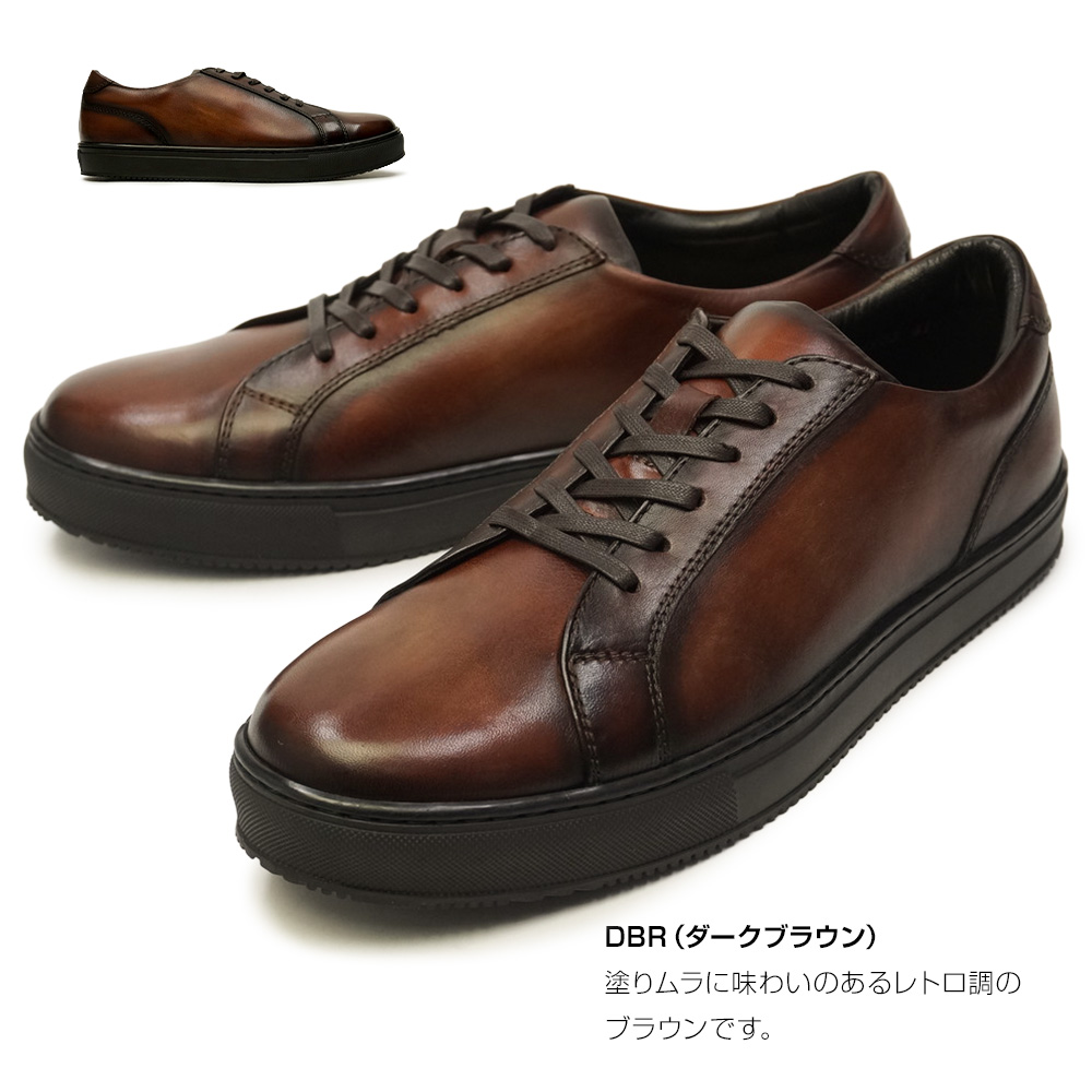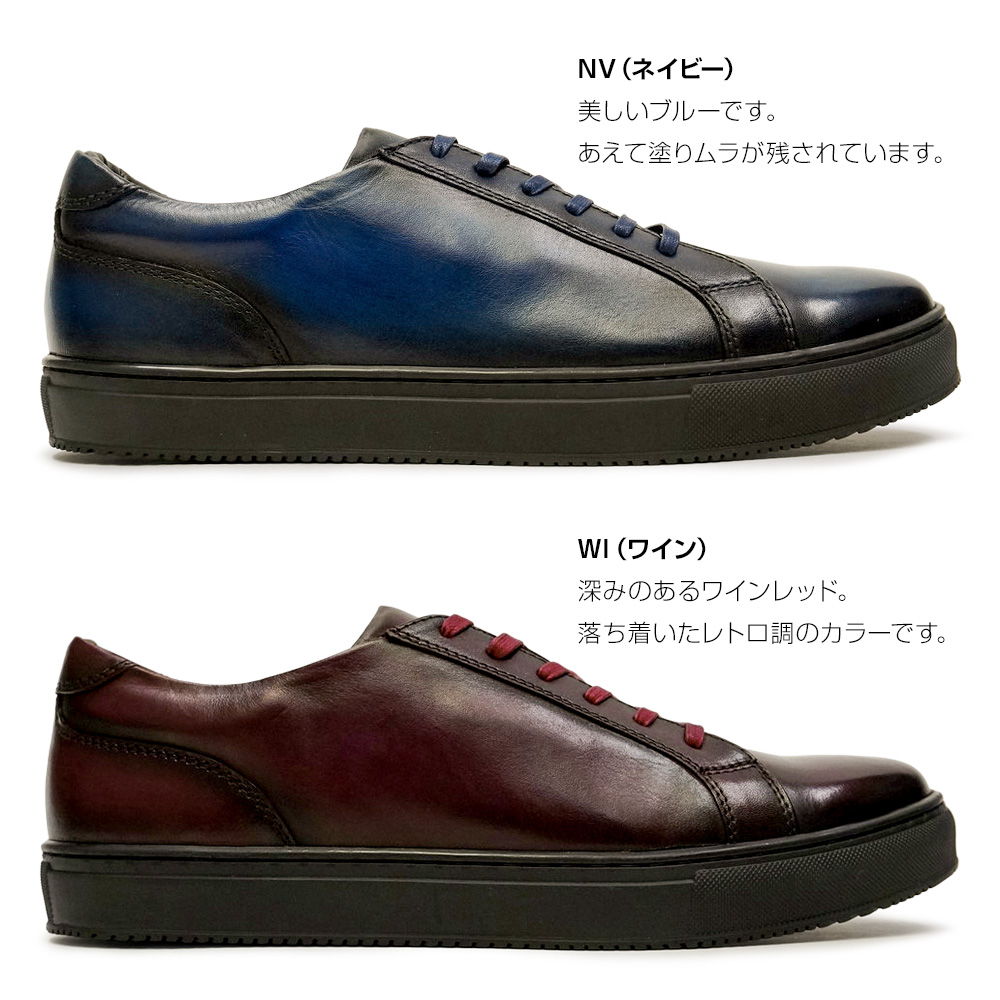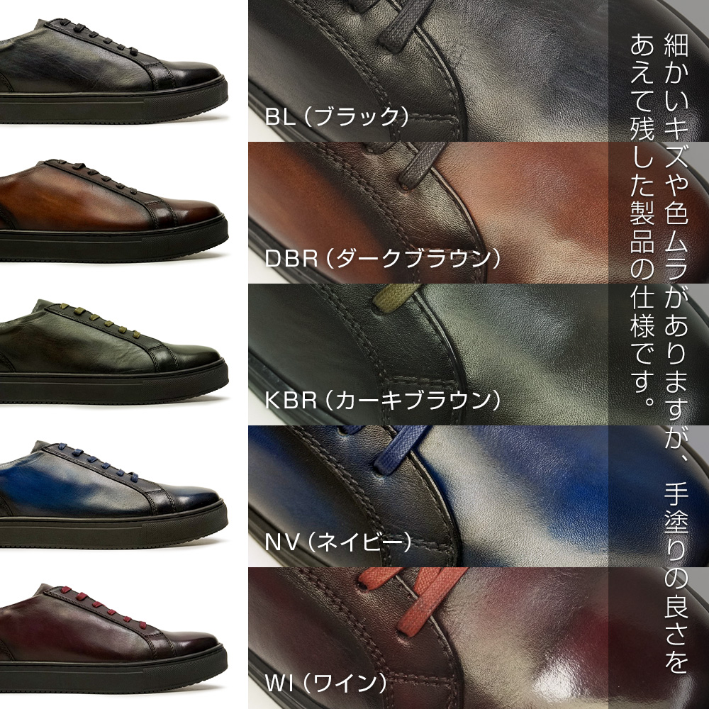 天然の皮を手染めで仕上げているため、靴ごとに個性的な色ムラがあります。