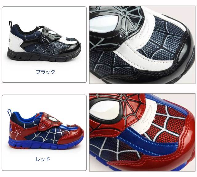 アメコミ ヒーロー キッズシューズ キャラクター 運動靴 誕生日 プレゼント ブラック レッド 赤 黒 クリスマス