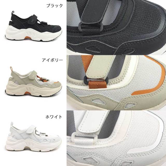 ハイブリッド オールシーズン ベルクロ マジックテープ ストラップ 母の日 敬老の日 2E 月旅行 衝撃吸収 抗菌防臭 サラリーナ エコ設計 ブラック アイボリー ホワイト