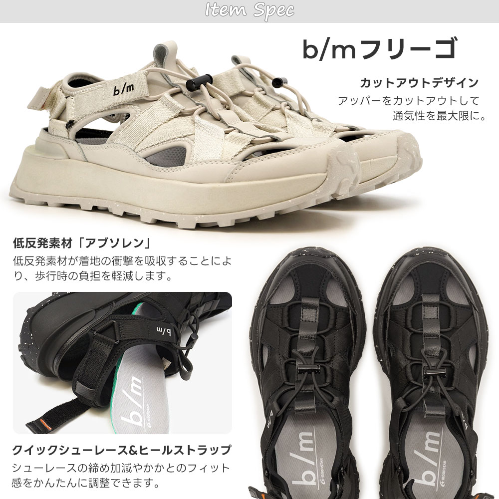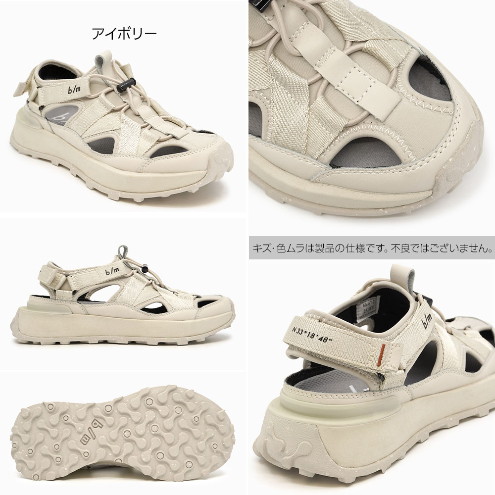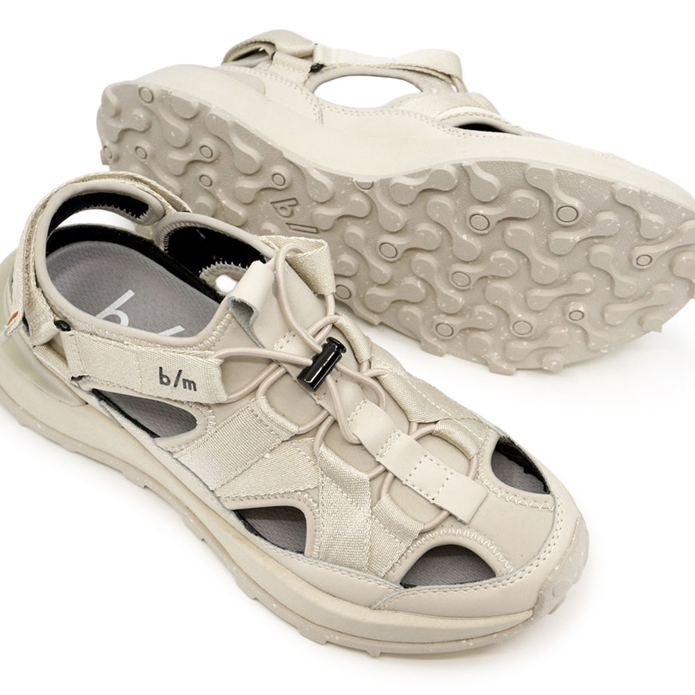 軽やかな履き心地と安定した歩行を両立した、b/m(ビーエム)のスニーカーサンダル。通気性に優れたカットアウト構造とストレッチ素材により、足当たりがやさしく、暑い季節でも快適に過ごせます。