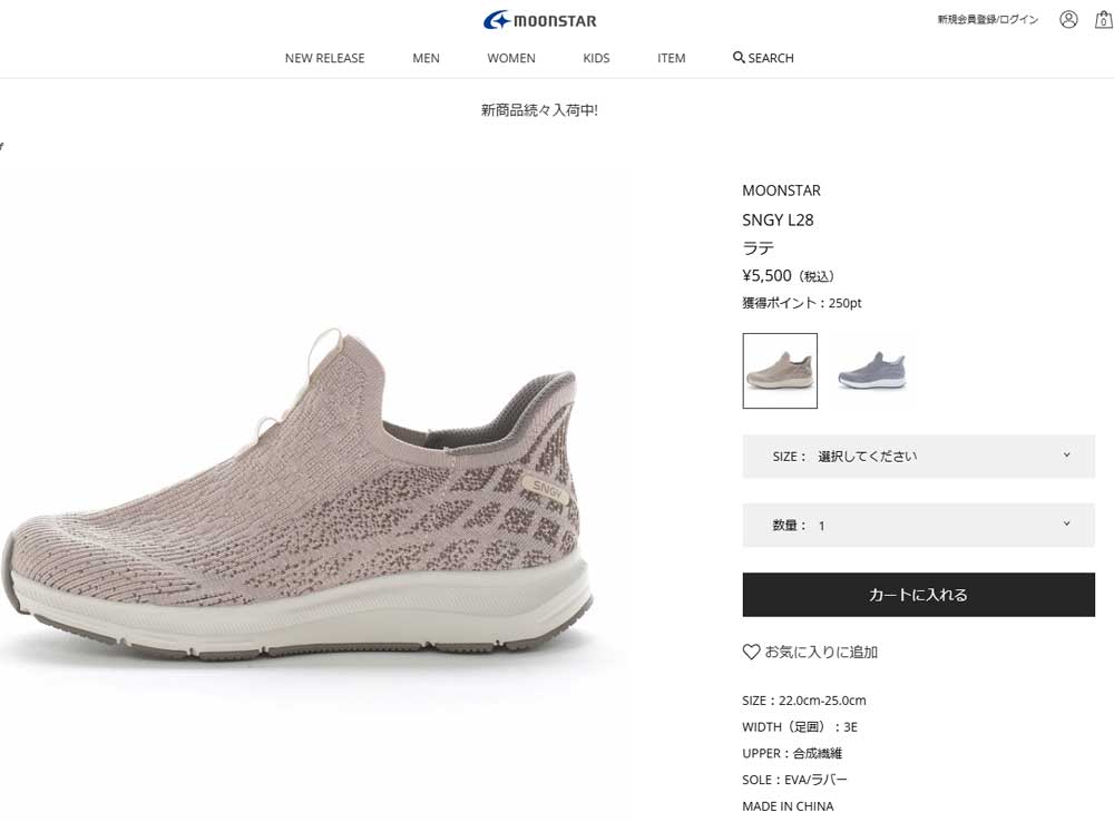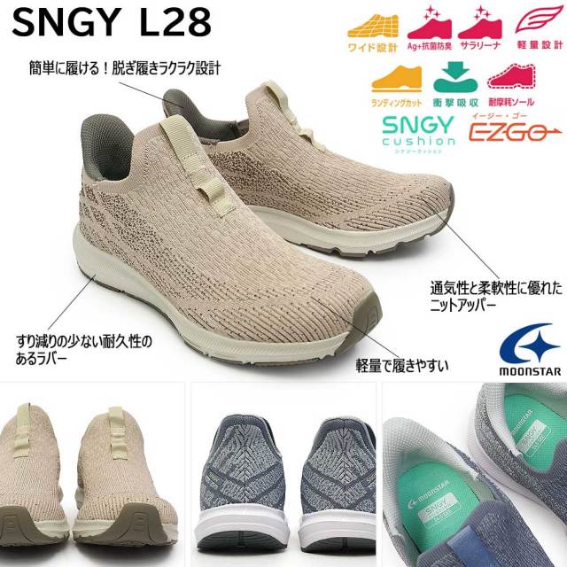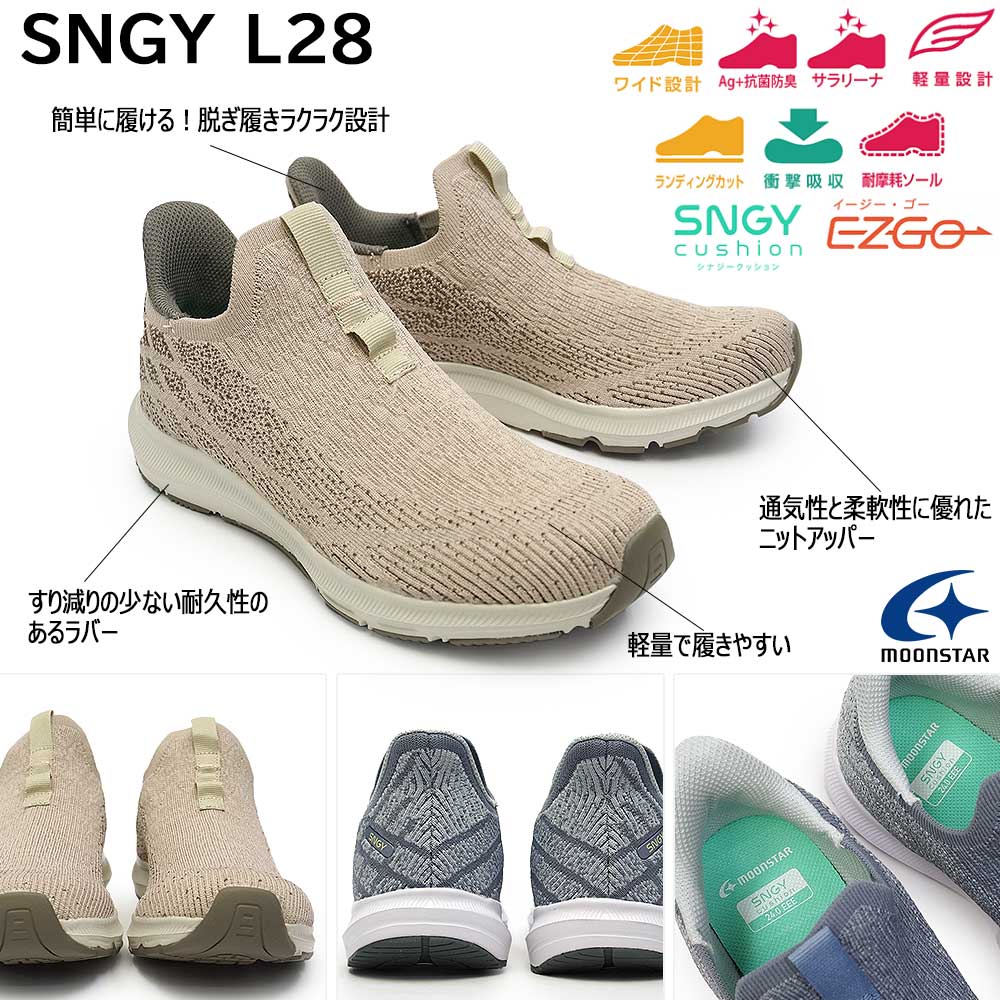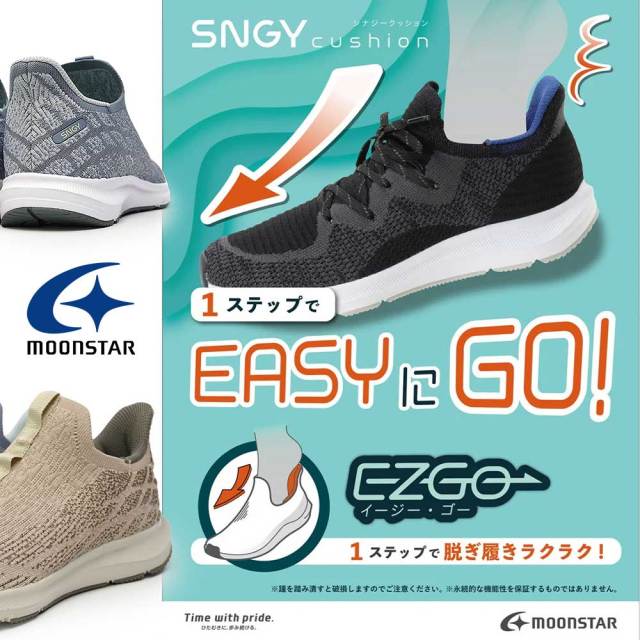 手を使わずスポッと履けるムーンスターのハンズフリースニーカー軽さと柔らかさが魅力のクッション性に優れたSNGYcushion(シナジークッション)シリーズです。