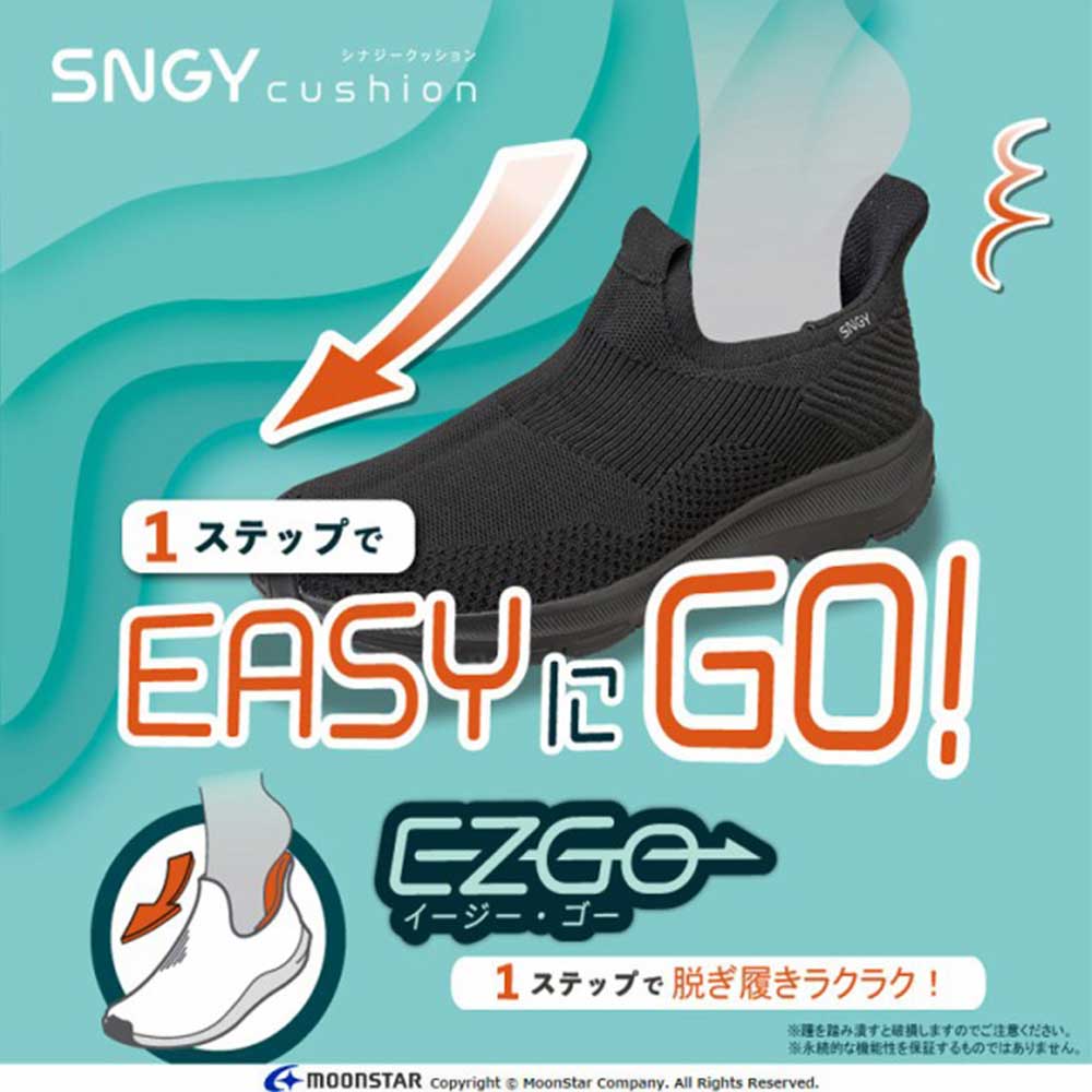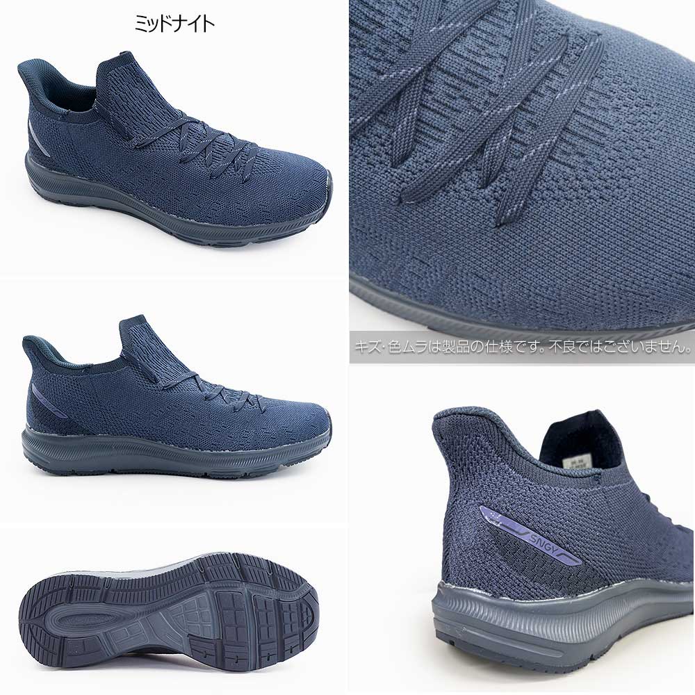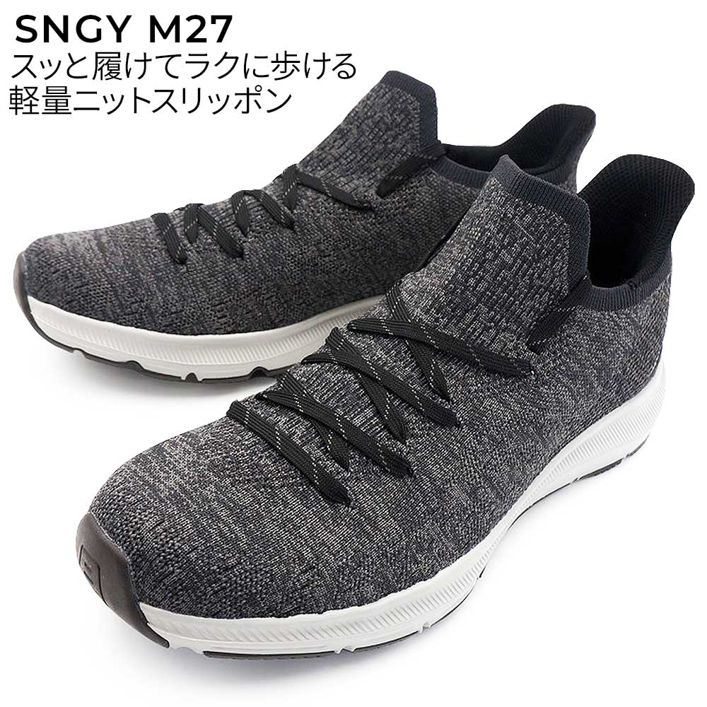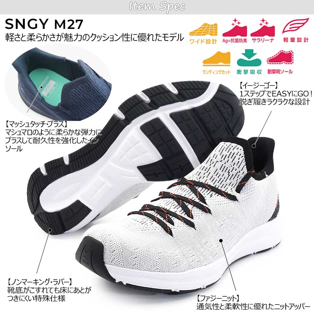 軽さと柔らかさを追求した「SNGYcushion」シリーズのメンズスニーカー。ニット素材のアッパーが足にやさしくフィットし、通気性にも優れているため、長時間の歩行でも快適な履き心地をキープします。