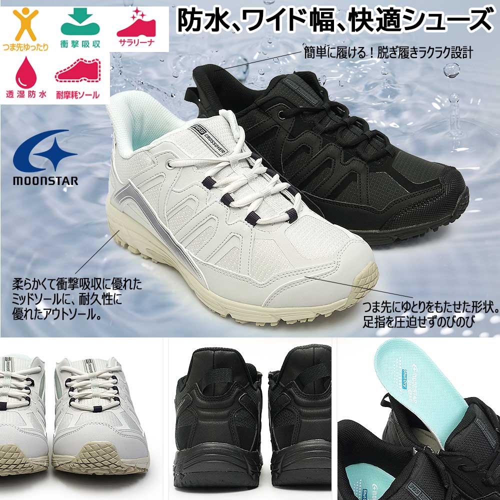 ムーンスター独自の透湿防水テクノロジー「Shut Dry(R)」を搭載。靴内への水の浸入を防ぎ、湿気は外に逃がす透湿防水機能で1年中快適な履き心地です。様々なアスレチックライフスタイルで活躍します。ミッドソールは柔らかくて衝撃吸収性に優れた「ライトフォーム」機能を採用し、アウトソールには摩り減りにくい耐久性に優れたラバーを採用。
