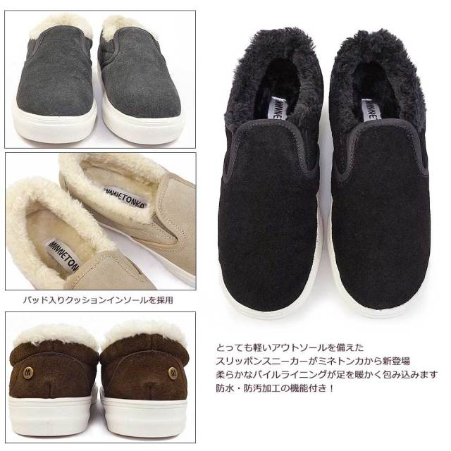 ミネトンカ スリッポン 靴 スニーカー レディース 黒 ベージュ ヌバック スエード