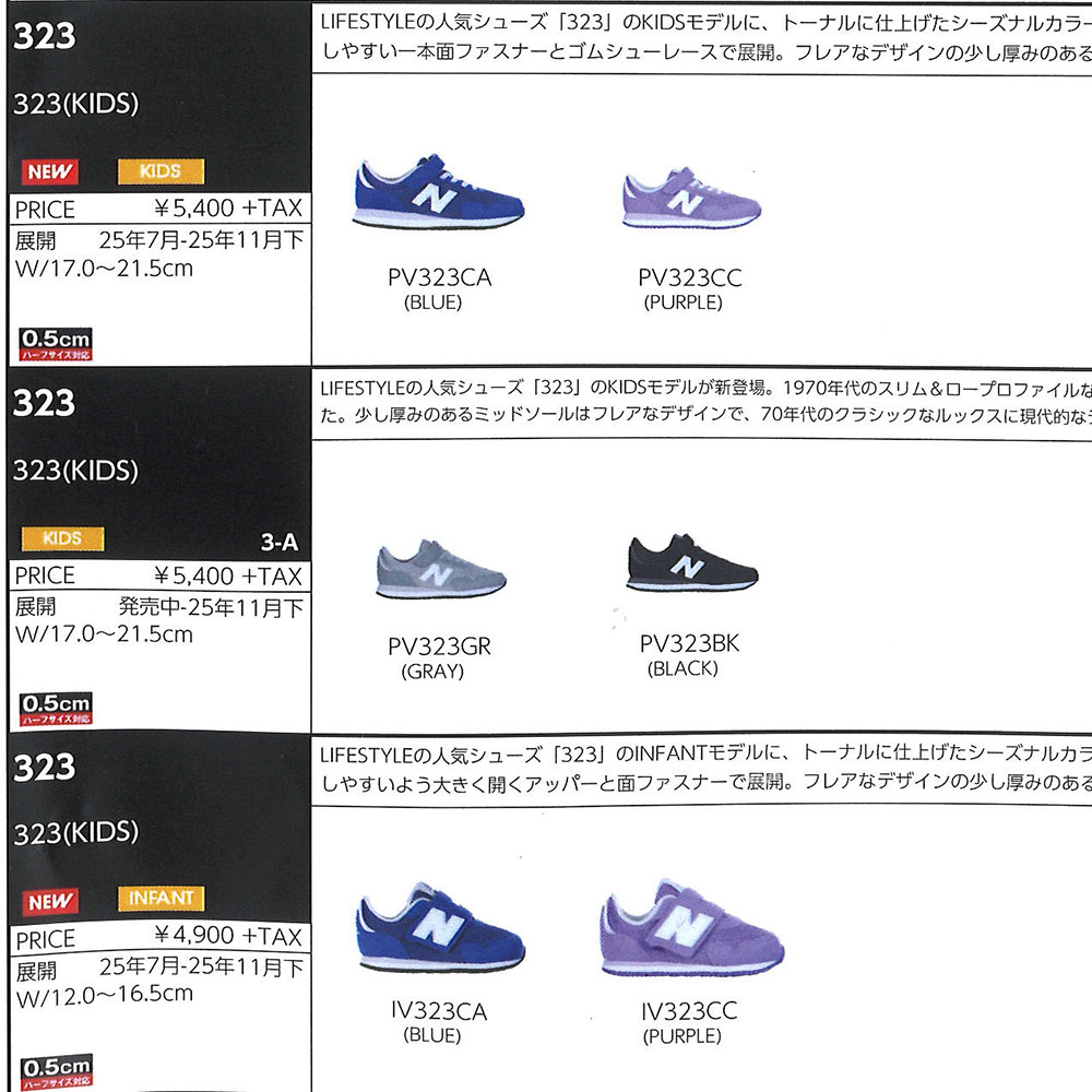 LIFESTYLEの人気シューズ「323」のINFANTモデルにトーナルに仕上げたシーズナルカラーが登場。1970年代のスリム&ロープロファイルなランニングスタイルを、