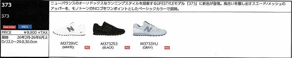 ニューバランスのオーソドックスなランニングスタイルを提案するLIFESTYLEモデル「373」に新色が登場。風合いを醸し出すスエード/メッシュのアッパーを、モノトーンのNロゴをワンポイントとしたベーシックカラーで展開。幅、サイズ感・・・・D表示。細めの作りです。