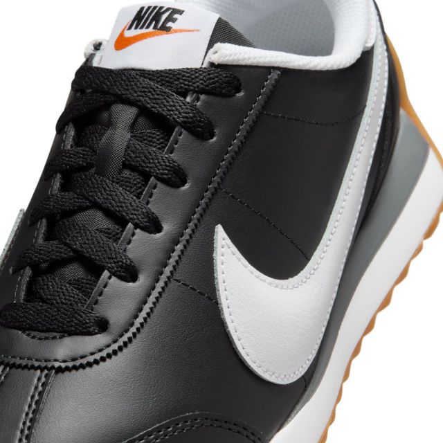 レザーのアッパーには、ふっくらしたスウッシュロゴをあしらいました。