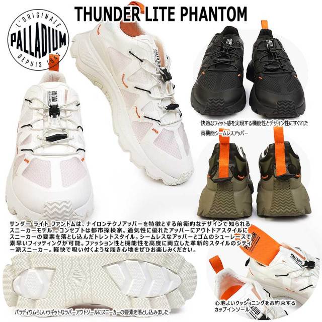 サンダー ライト ファントムは、ナイロンテクノアッパーを特徴とする前衛的なデザインで知られるスニーカーモデル 。コンセプトは都市探検家。通気性に優れたアッパーにアウトドアスタイルにスニーカーの要素を落とし込んだトレンドスタイル。シームレスなアッパーとゴムのシューレースで素早いフィッティングが可能。ファッション性と機能性を高度に両立した革新的スタイルのシティー派スニーカー。軽快で吸い付くような履き心地をぜひお楽しみください。
