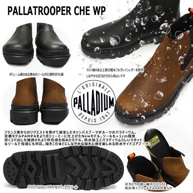 フランス軍からのリクエストを受けて誕生したキャンバスブーツがルーツのパラディウム。定番モデルPAMPAをよりボリューミーに仕上げたNewモデル。ソールも+1cm程度厚くコバ出しも強調されより存在感を高めたモデル。しっとりとしたマット感のある贅沢なオイルドレザーに防水加工を施しパラディウムらしいラギットなソールで雪道にも対応。履きこむほどにしなやかな履き心地を楽しめる防水サイドゴアブーツ。※素材(天然皮革)の風合いを生かした仕上げです。細かいキズや染めムラ、しわなどは仕様のため商品の不良ではありません。
