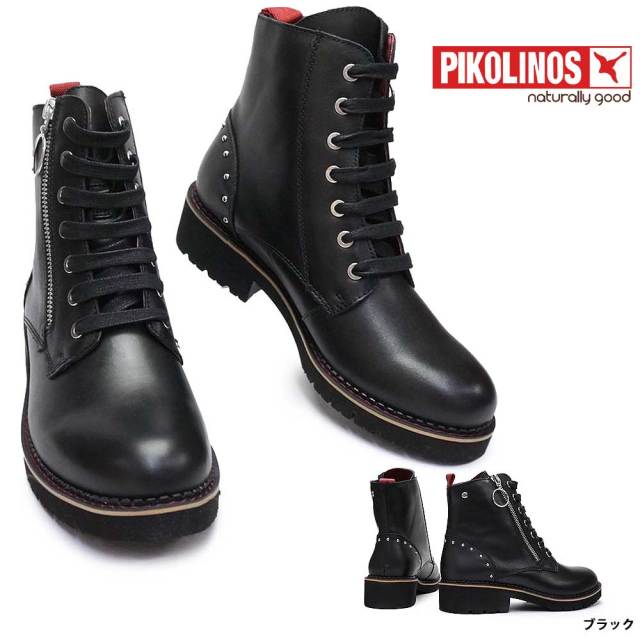 ピコリノス ブーツ ショート レディース 本革 ウェッジ ブラック 黒 普段履き レースアップ サイドジッパー カジュアル ストラップサンダル