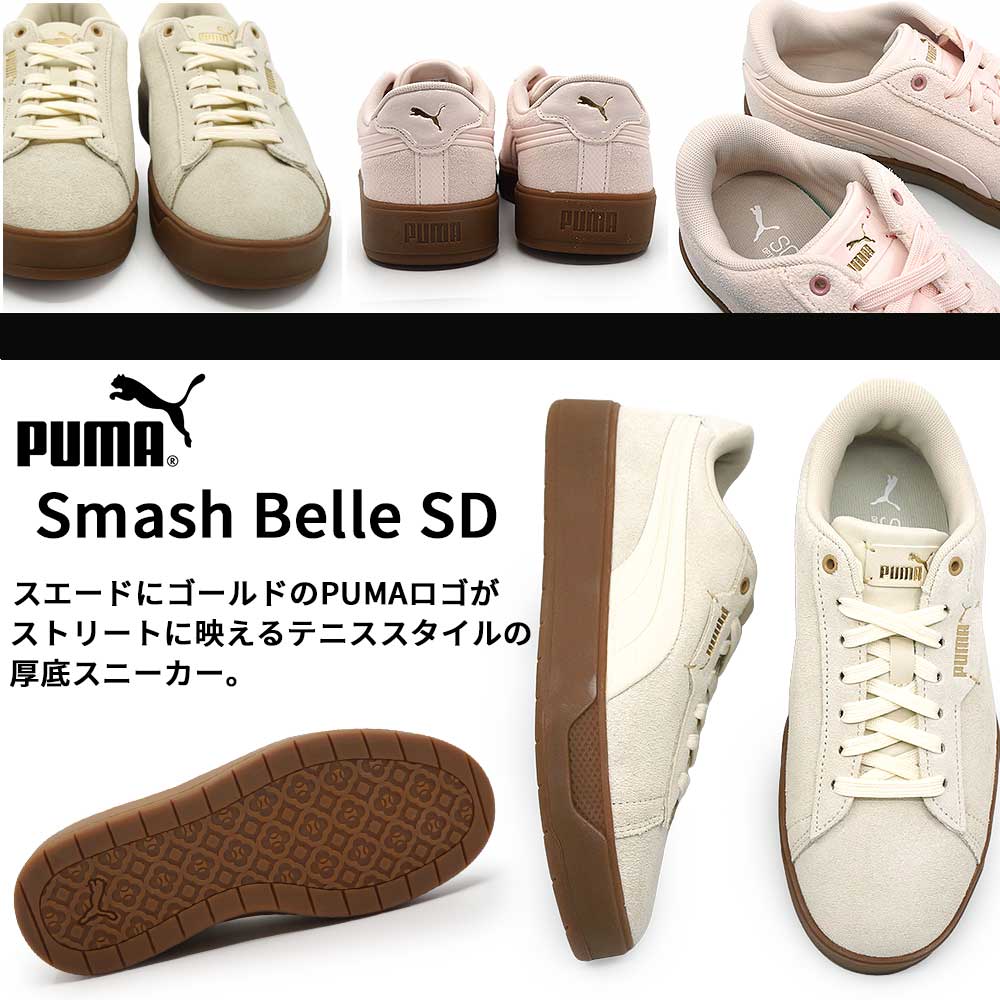 プーマ スマッシュコレクションは、テニスにインスパイアされたアッパーデザインと緩やかな傾斜ラインが特徴です。