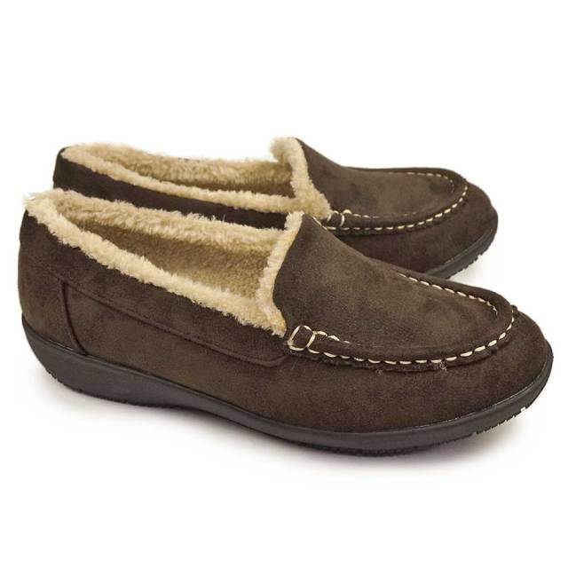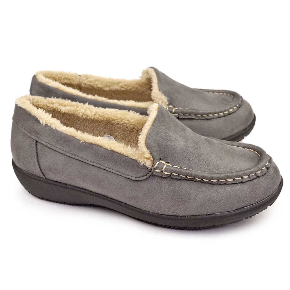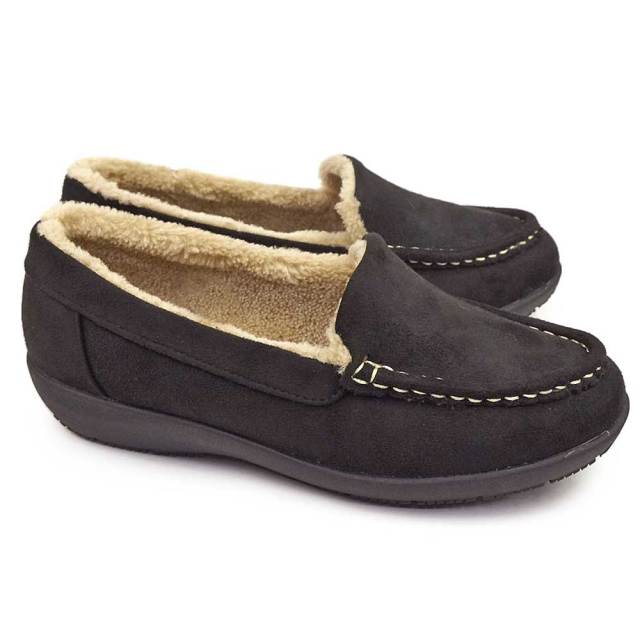 ふわふわのファーに包まれる秋冬の定番モカシン。上品なスエード調素材に撥水加工を施し、雨や雪の日でも安心して履けます。