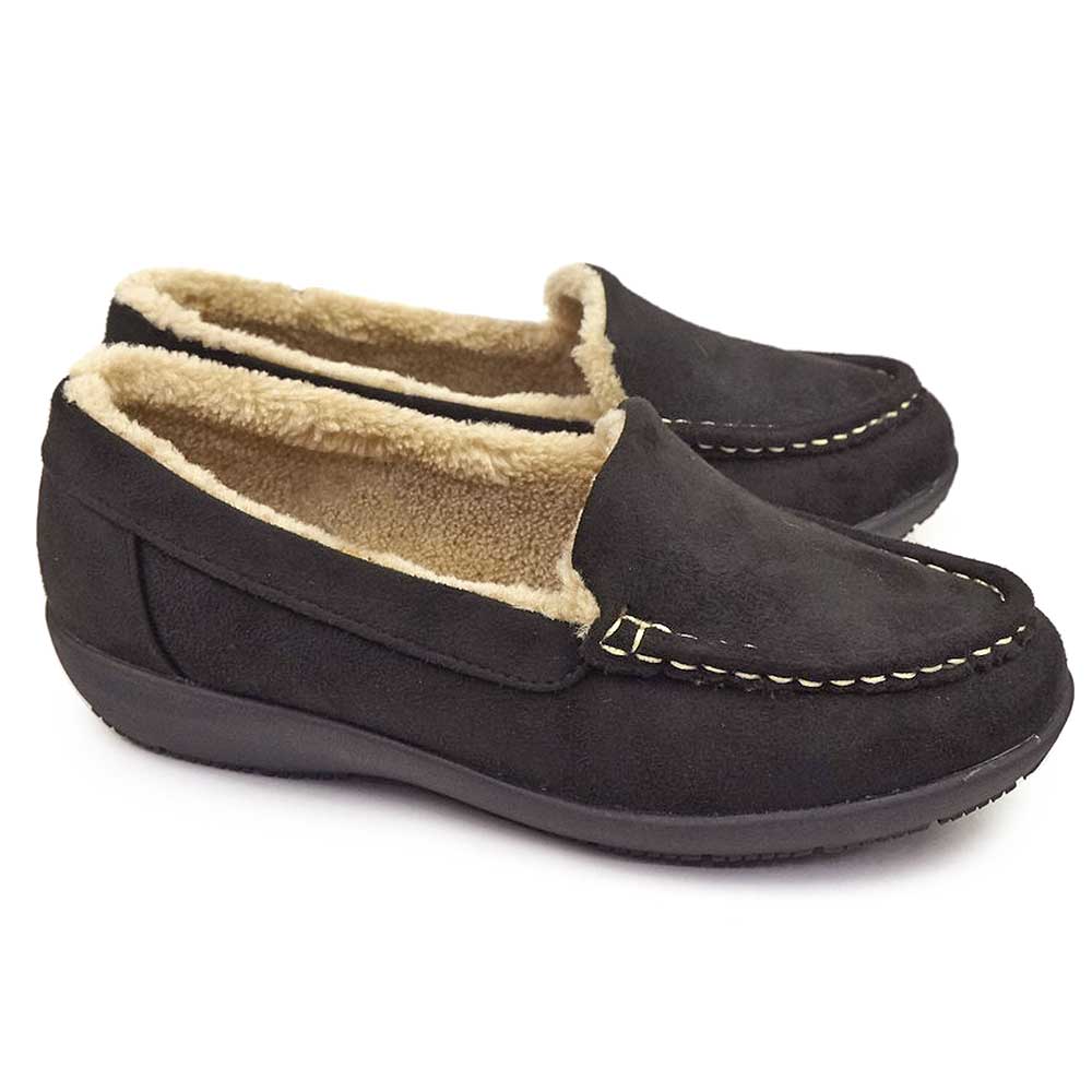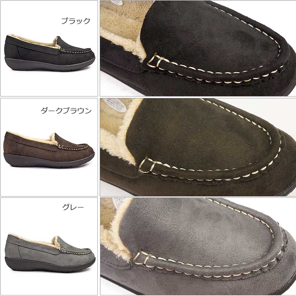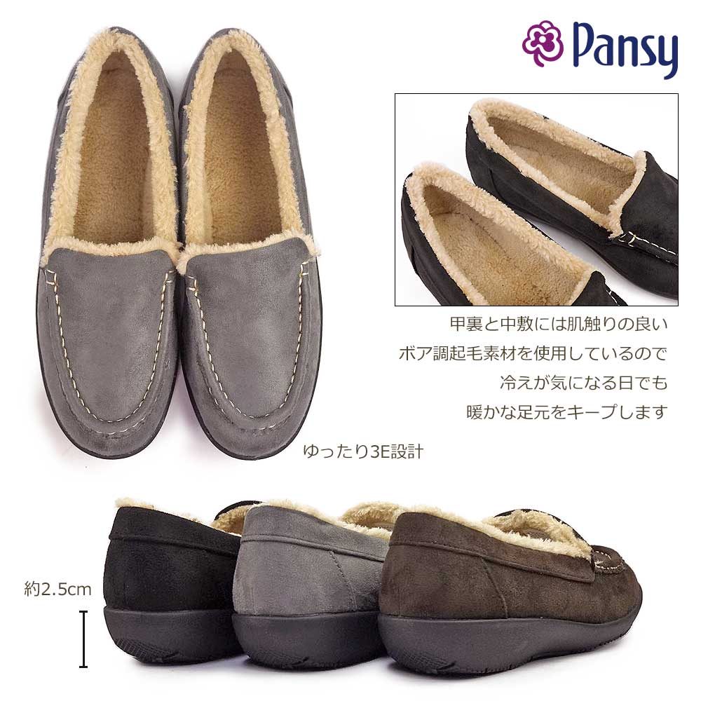 パンジーハーツ ぱんじー ボア モカシン ローファー レディース 靴 カジュアル 軽量 婦人 お出かけ 靴 黒 ブラック ブラウン ギフト プレゼント 旅行 軽い