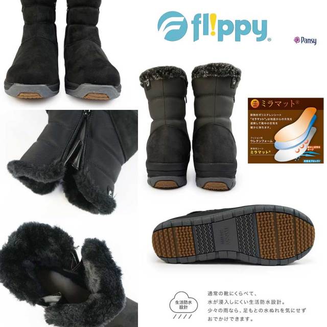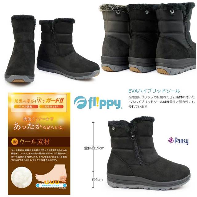 パンジー 防水 ブーツ レディース 雪 雨 冬 滑りにくい
