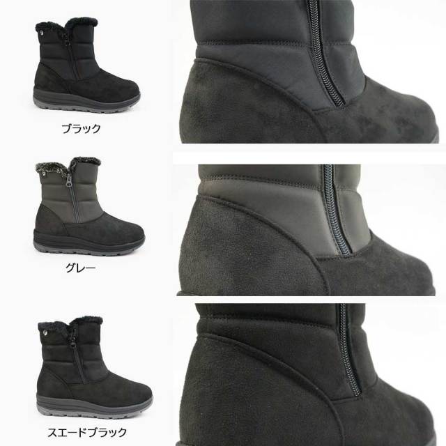 履くときに便利なスライドファスナーを両サイドに使用。厚い靴下などを履きたい季節でも履き口で詰まらずにスムーズに履けます。中敷きはウール素材仕様であたたかく蒸れにくい。雨や水の浸入を防ぐ生活防水機能