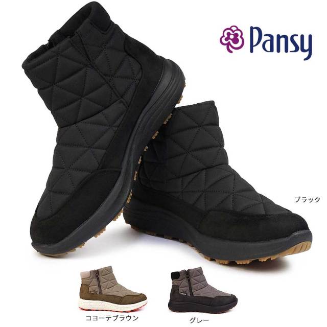 パンジー ブーツ 防水 冬 雨 雪 脱ぎ履き らくらく ゆったり 暖かい 軽量 歩きやすい 黒 茶色 グレー ブラック ブラウン