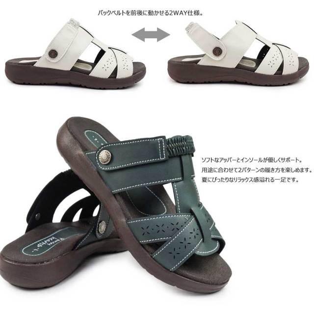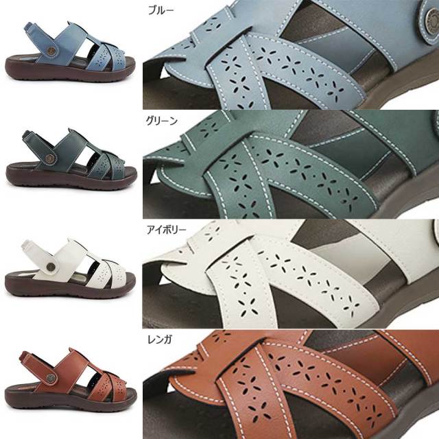 レディース サンダル フラット底 2WAY パンチング 花柄 ギフト 母の日 敬老の日 プレゼント ベルト カジュアル クラシック 軽量 バックベルト ブルー グリーン アイボリー レンガ 婦人 軽量 抗菌 防臭