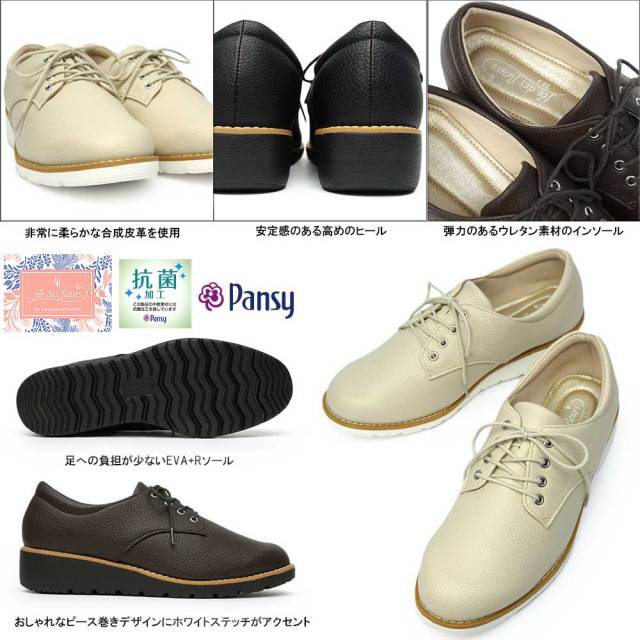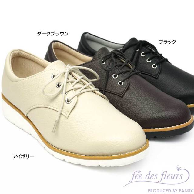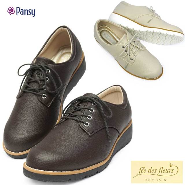 パンジー レディース 靴 レースアップ シューズ FD101 軽量 婦人 黒 茶 ブラック ブラウン アイボリー オフィス コンフォート プレゼント ギフト 普段履き 旅行 通学 トラッド 高反発 秋冬