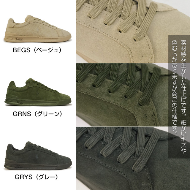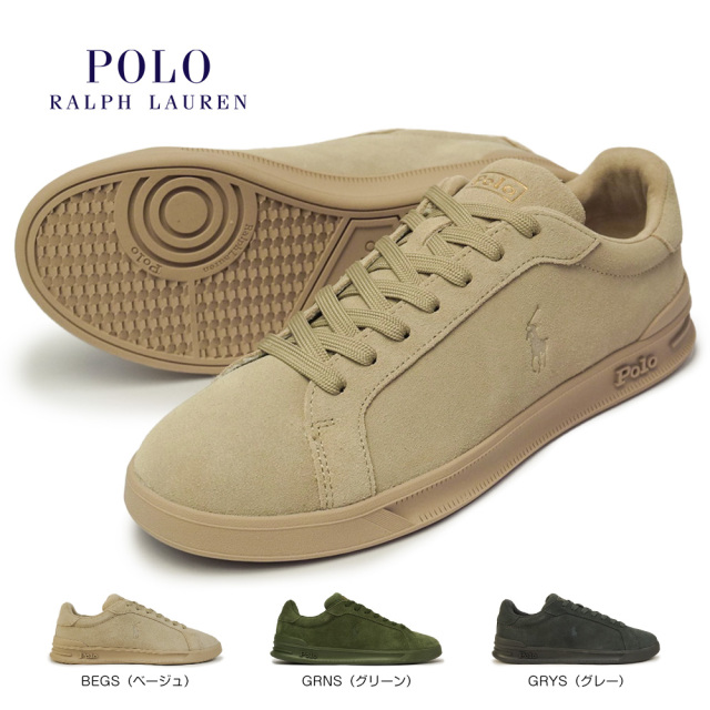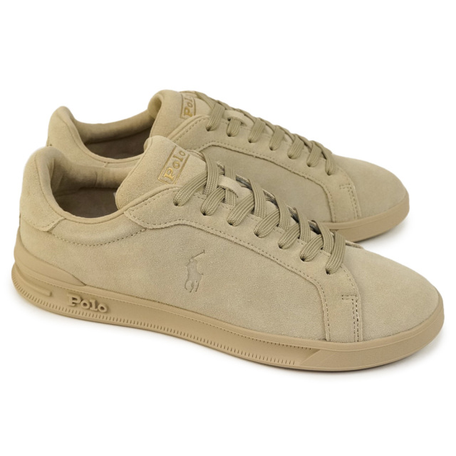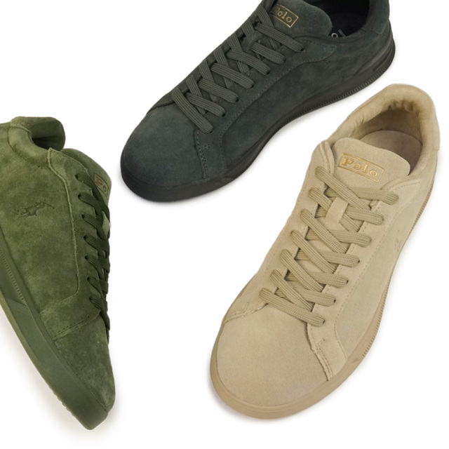 LWG(LEATHER WORKING GROUP)認証レザーを採用した、ポロラルフローレンの本革スエードスニーカー。上質なスエードアッパーのサイドにはさりげないPP(ポロポニー)の刻印、ヒールにはゴールドのロゴ。POLO定番のレザーコートスニーカーがプレミアムな1足となりました。