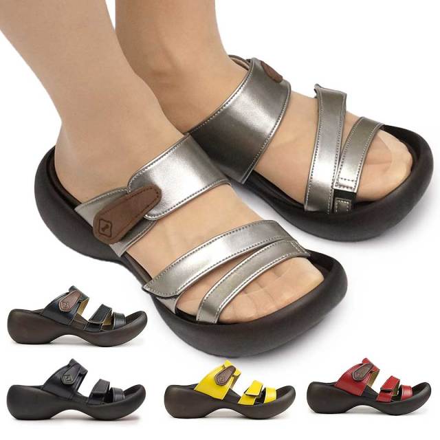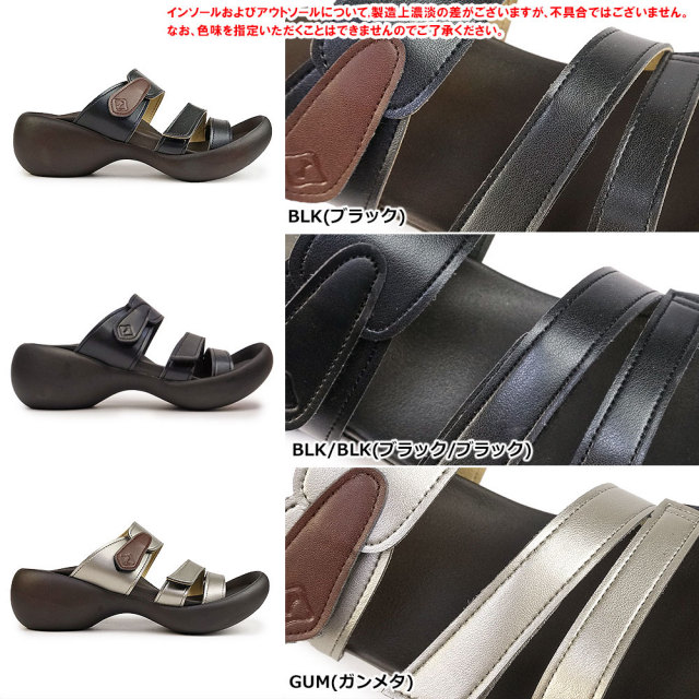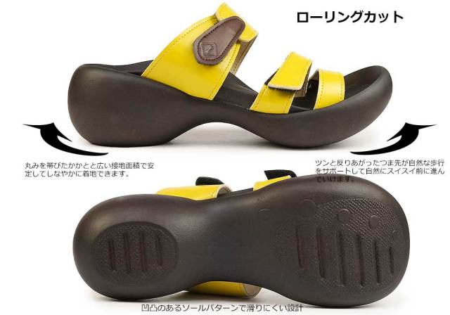柔らかいインソールが足にかかる衝撃を吸収してくれるので、長時間歩いても疲れにくいエッグヒールのサンダルは、お洒落なデザインだけでなく、機能性も抜群です。足に優しい素材と構造が、安心して履くことができます。デニムスタイルをはじめ、様々なコーディネートに合わせやすいのが魅力。カジュアルからフォーマルまで幅広く対応でき、オールシーズン活躍すること間違いなしです。接地面が広いため安定感があり、4.5cmの高さも気にならない程です。コロンとした丸いフォルムが可愛らしいエッグヒールが女性らしい足元を演出してくれます。注)インソールおよびアウトソールの色味について、製造上濃淡の差がございますが不具合ではありません。なお、色味を指定することはできませんのでご了承ください。